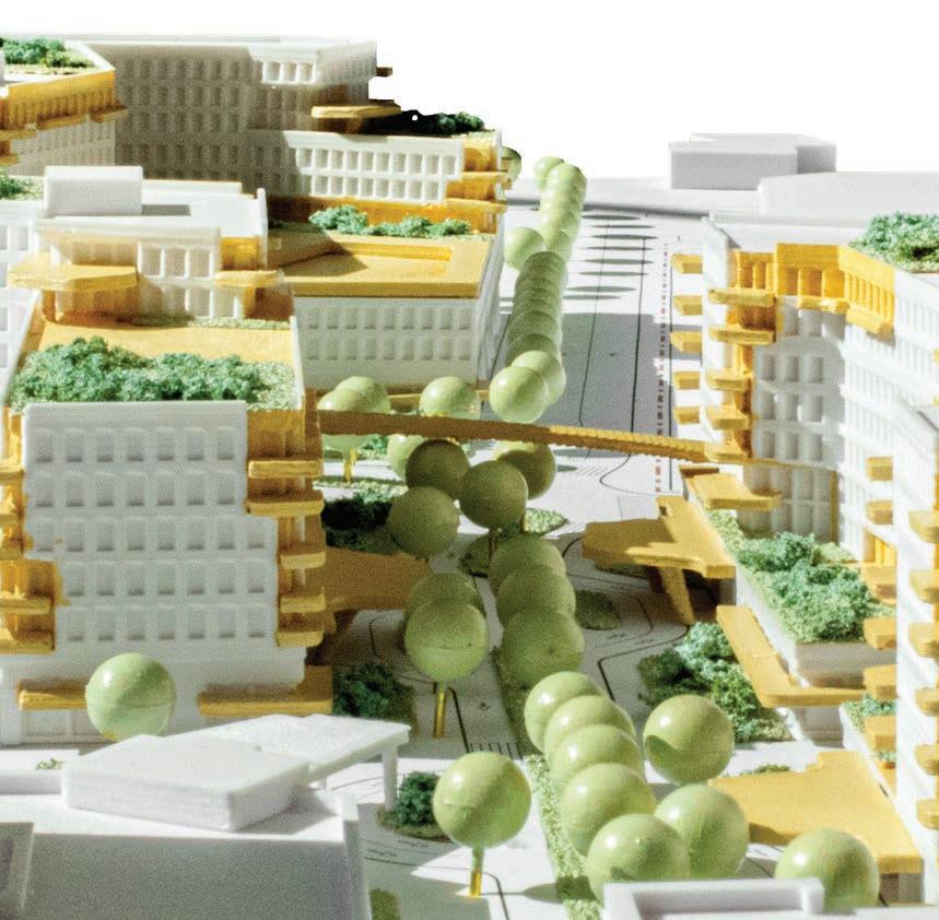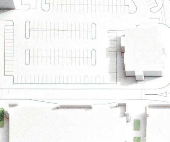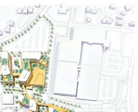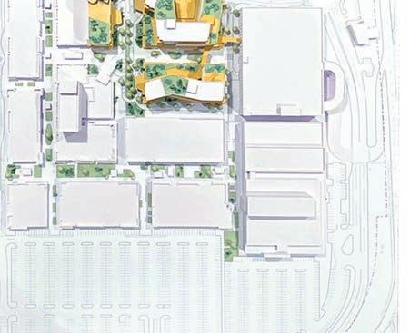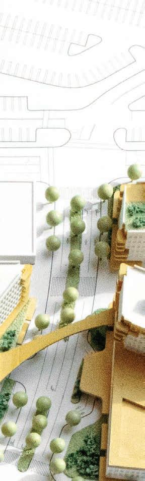 A 36”x48” site model of a shopping mall redevelopment proposal. This scheme shows mixed use housing and ground floor retail in the existing parking lots of the Center.
