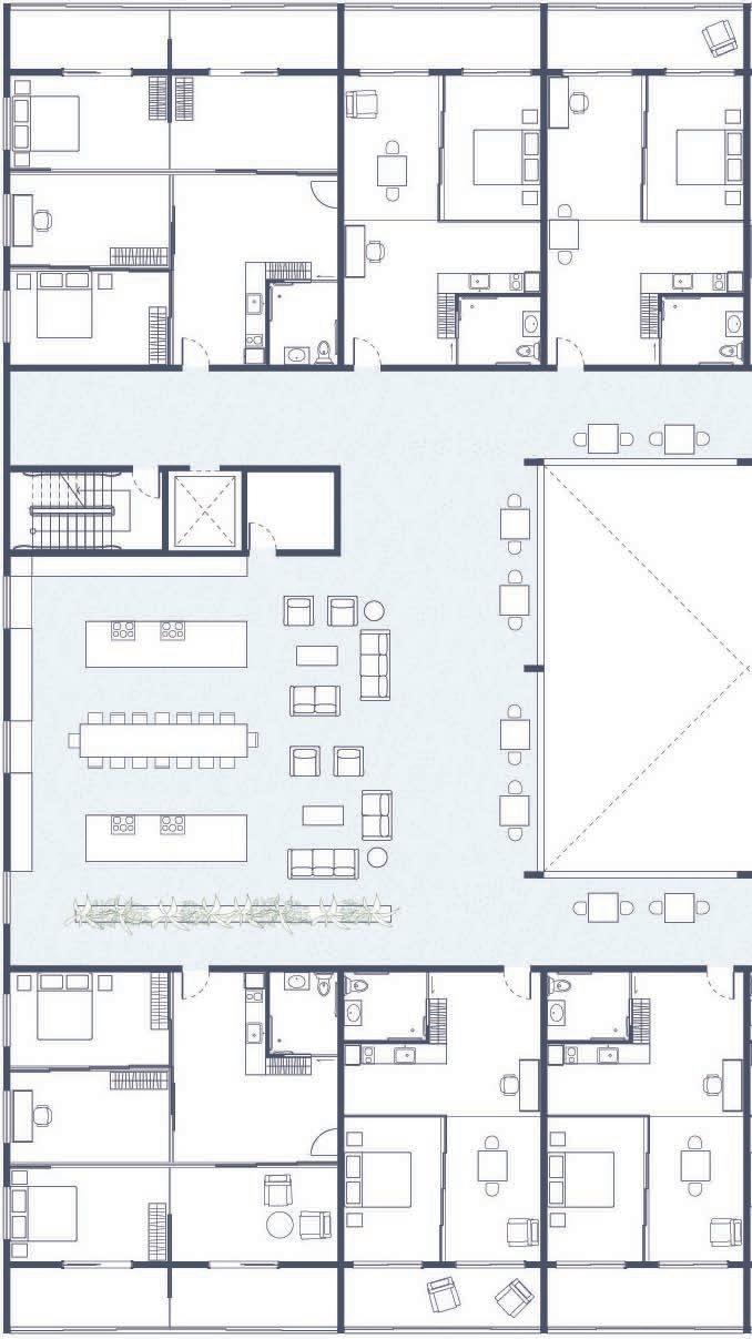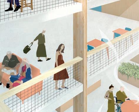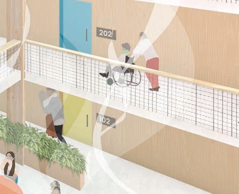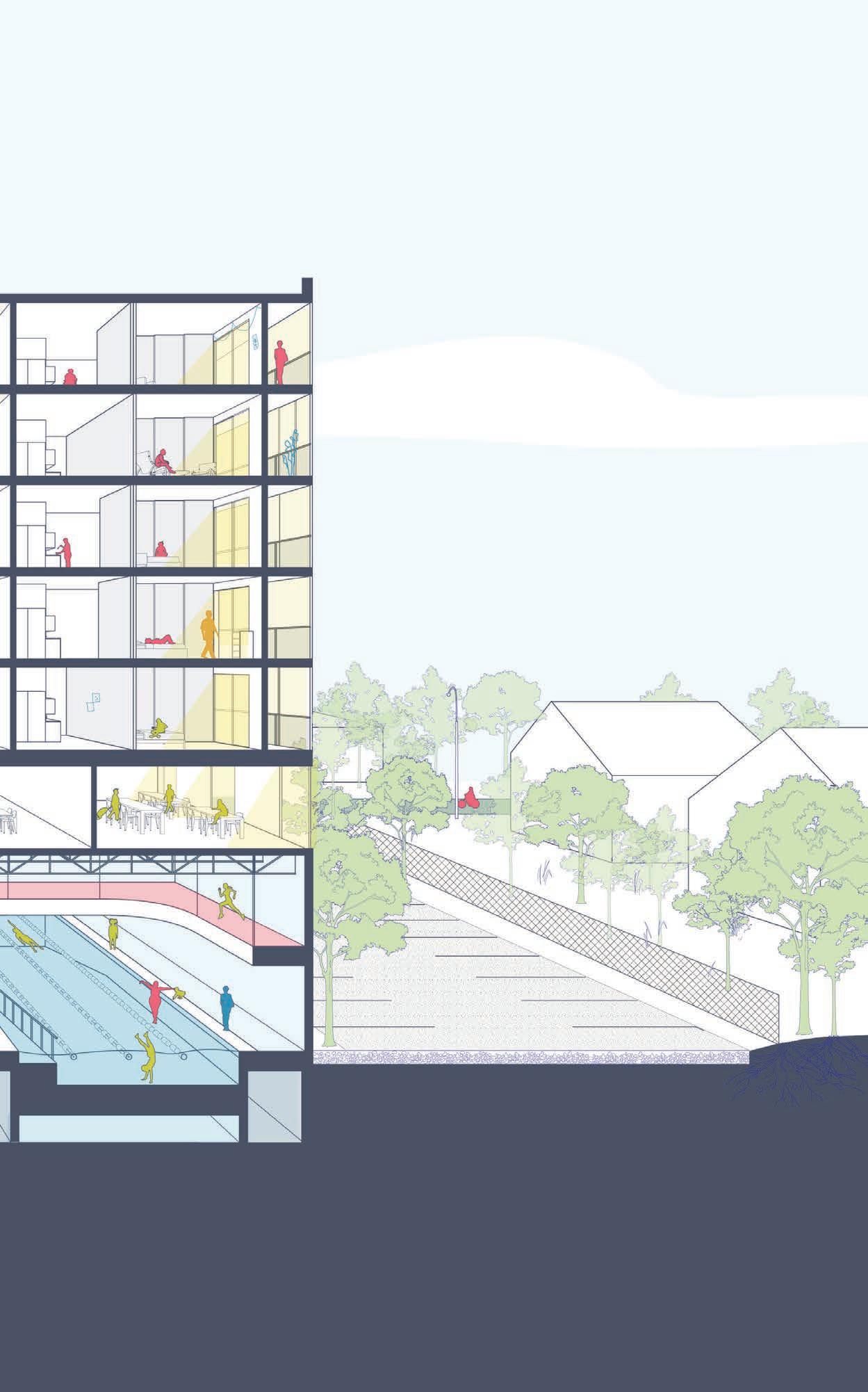Residence provides affordable housing for seniors stacked above recreation facilities. From the scale of the site to the residential unit, this project aims to promote dignified aging through activity, intergenerational relationships, and agency over one’s space to increase quality of life.