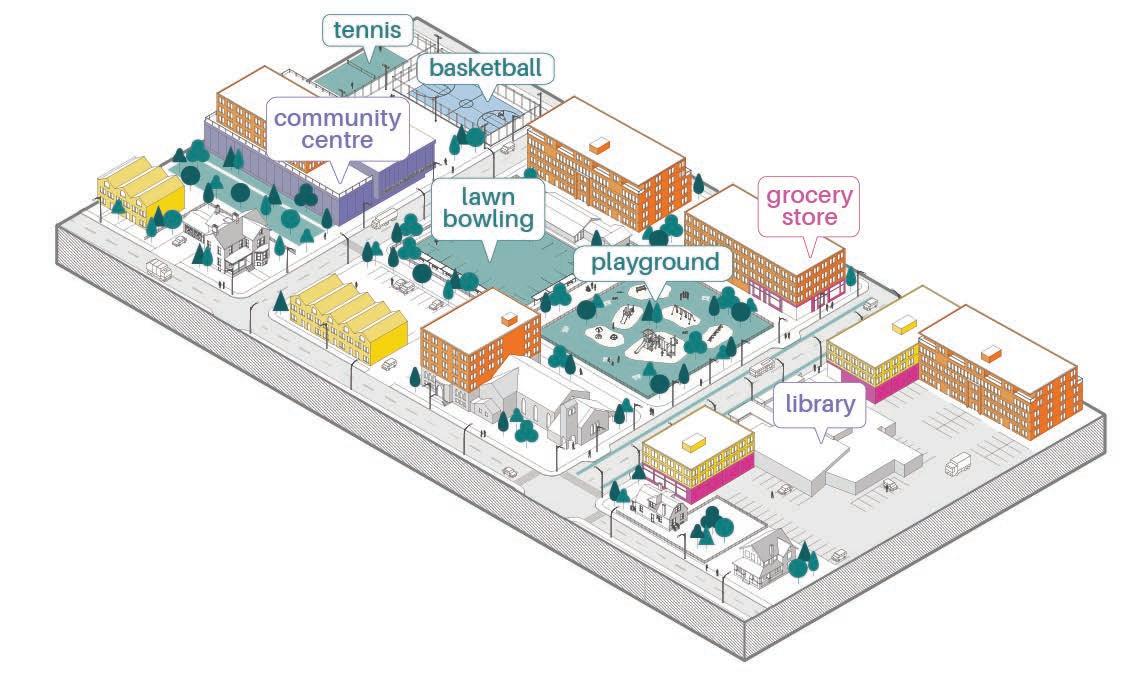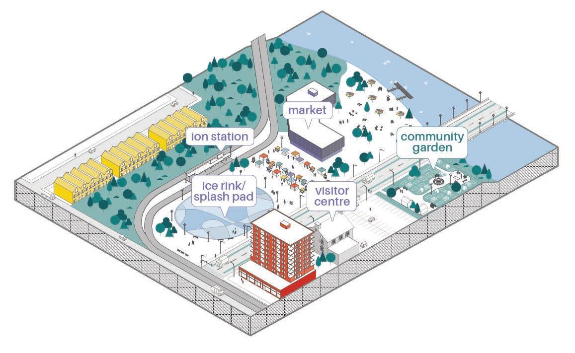 Nestled between the Speed River and Cambridge’s largest park, the historic townscape of Preston provides the perfect backdrop for the new ION station. The proposed MTSA plan addresses Preston’s existing aging population and an influx of young families through opportunities for intergenerational living, learning, and recreation. The masterplan highlights what Preston was, and looks forward to what it can become—an equitable transit-oriented neighbourhood with affordable housing, community amenities, and public realm that enhance residents’ day-to-day experience.