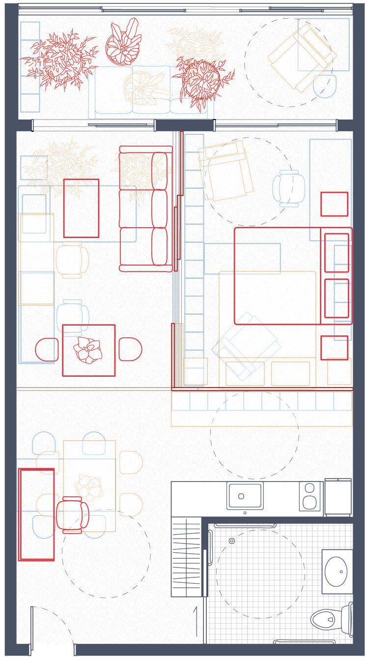 1 bedroom unit + overlaid configurations