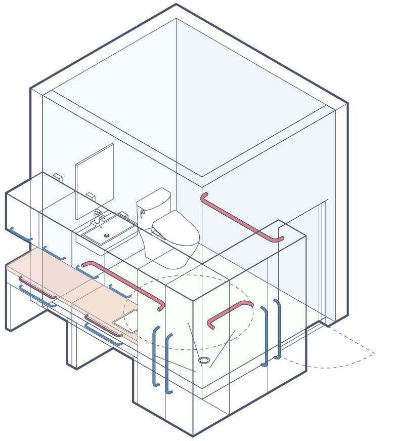 Counter grab bar for user support Increased grout to improve traction