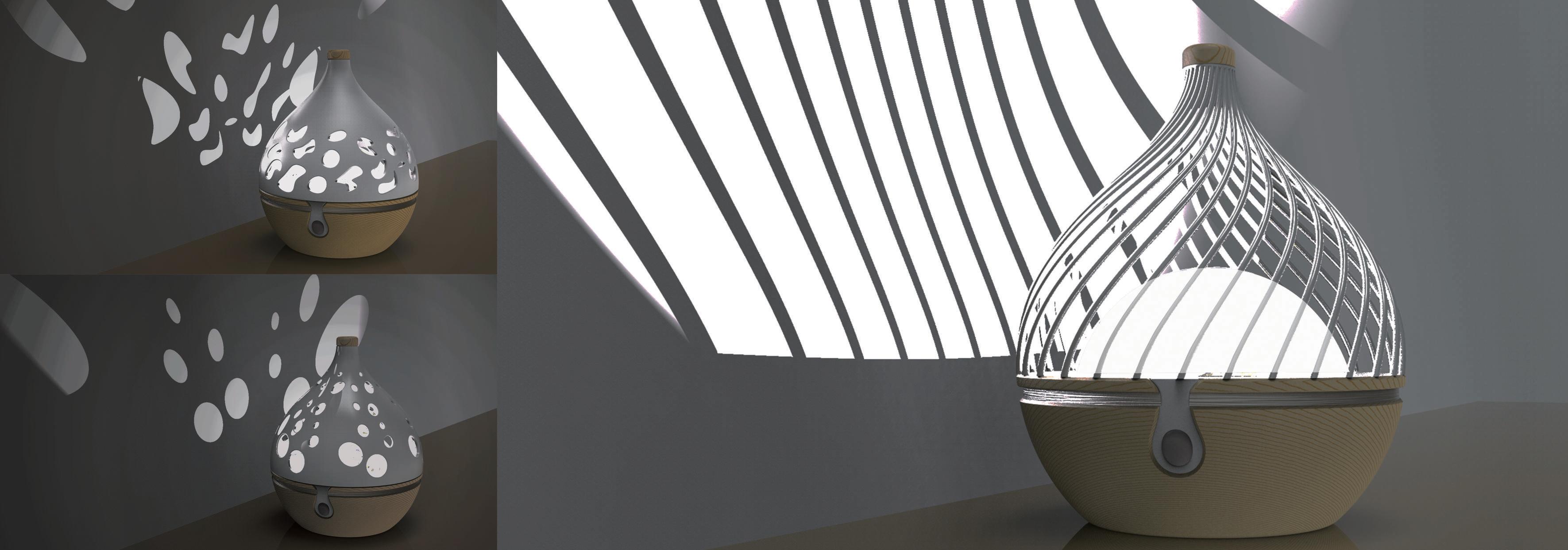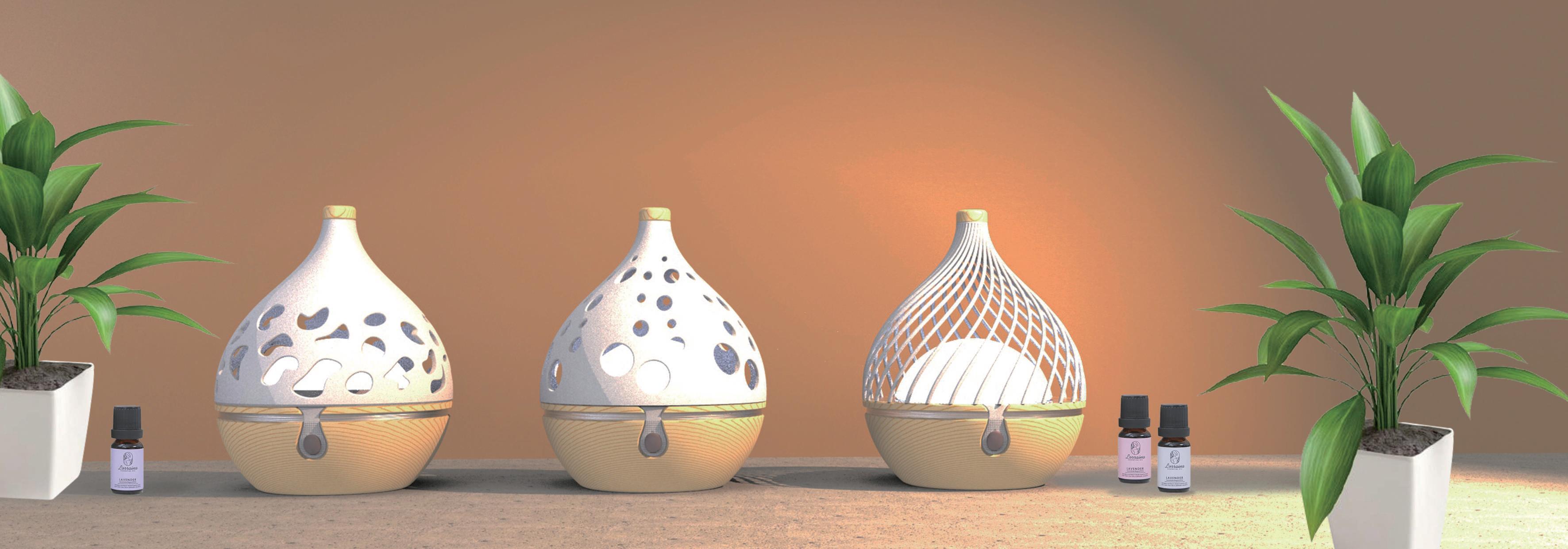 由閉合到慢慢恢復的過程, 應用於擴香燈的光影中,