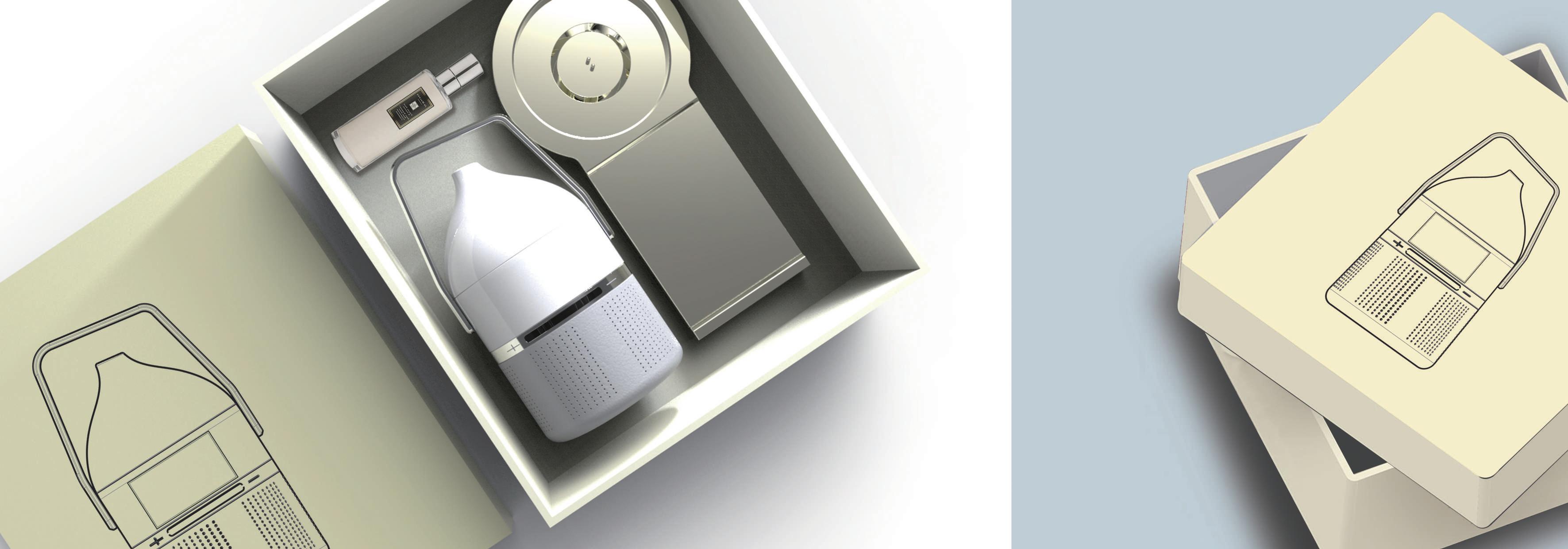 種「漸漸擴張」的方式, 象徵著一種釋放壓力的過程, 讓使用者在使用此產品進行芳香療法時, 增添情境感受、更加放鬆。
