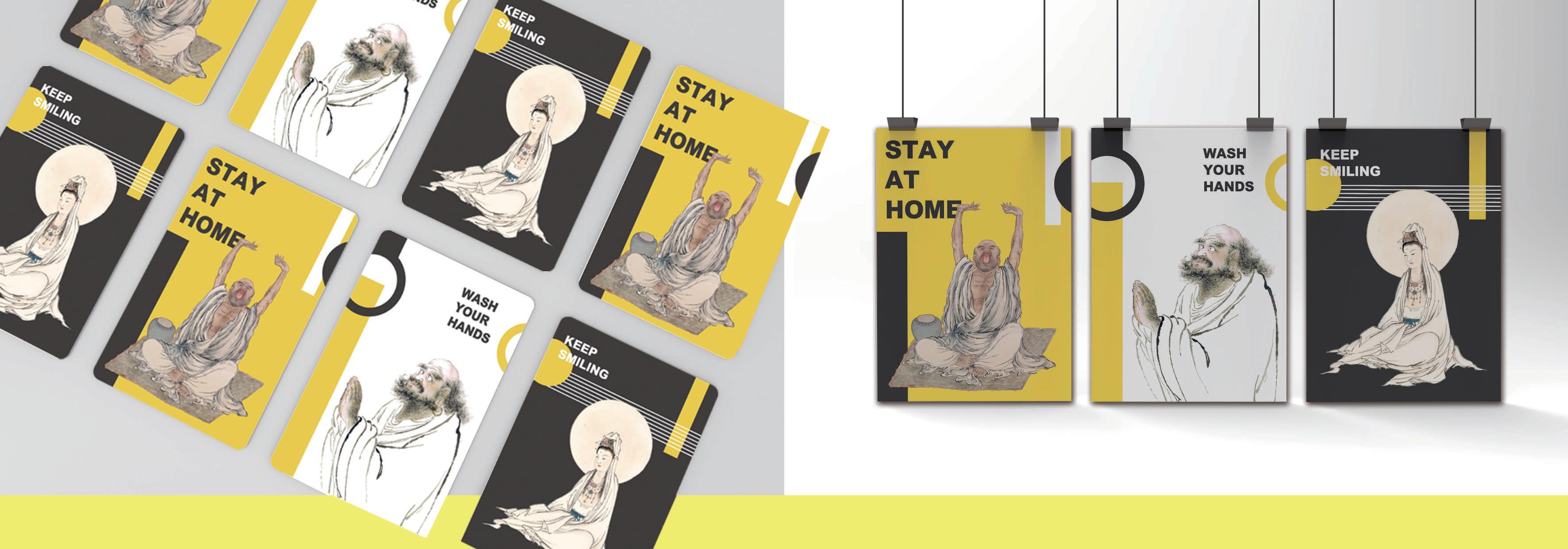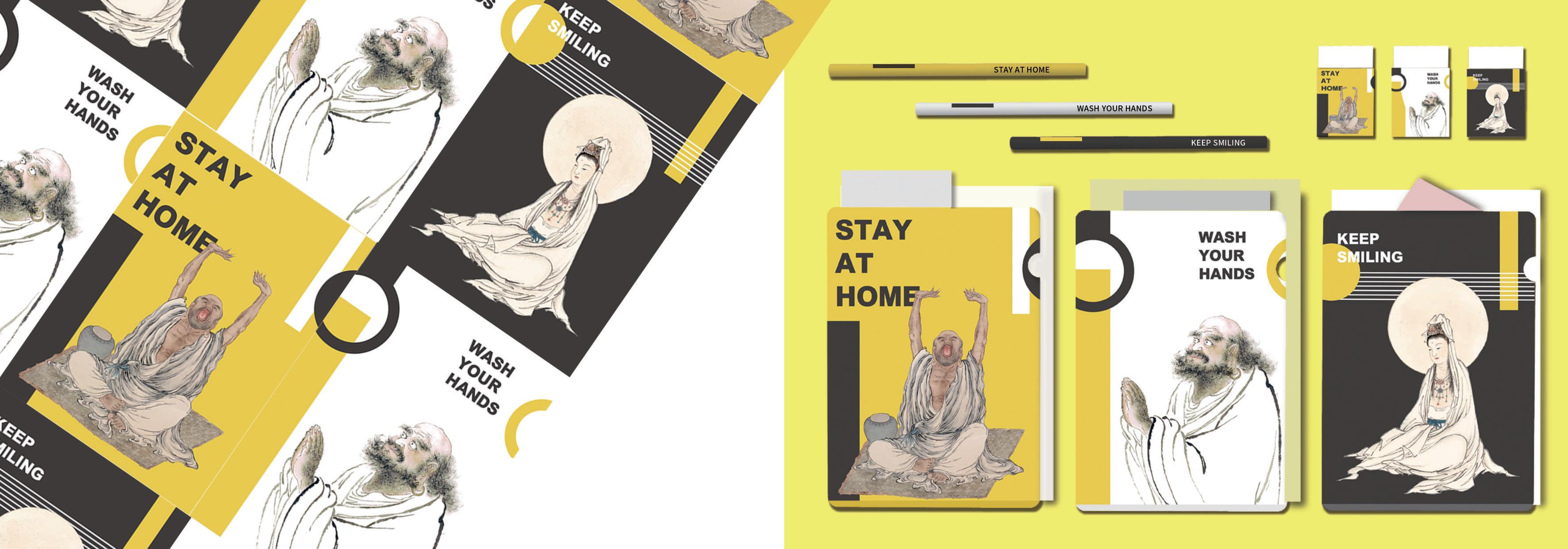 2020全球疫情肆虐,讓夏荊山老師的畫作帶領我們藝起防疫!本作品使用荊山老師的三幅畫作,將人物形象搭配防 疫標語,以大膽鮮明的黃、黑、白與幾何圖形進行搭配,設計出一目了然的防疫文宣,並將此設計呈現於海報、文具 用品、以及悠遊卡中,希望透過藝術的的視角,向社會宣導防疫的重要性。