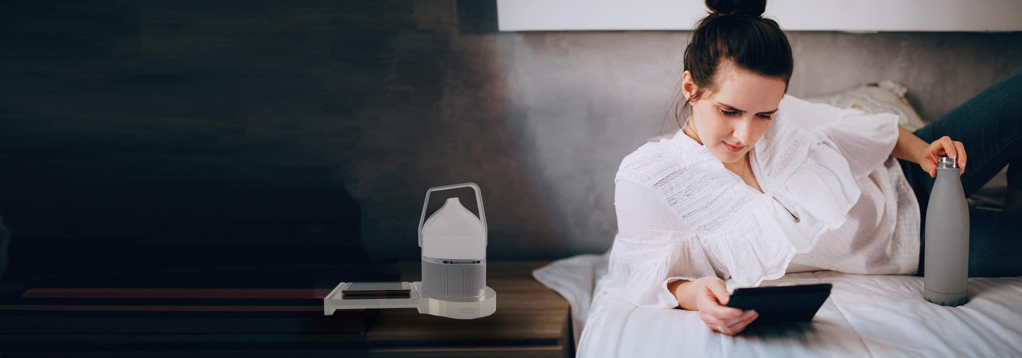 結束忙碌的工作後,疲憊的回到房間,洗完澡躺在床上滑手機的同時,進行今天的芳療, 先連結手機藍芽,播放自己喜歡的歌曲,看手機中傳來的訊息,享受完全的輕鬆自在的休息時光, 睡前將手機放在充電台上,關燈後開啟夜燈按鈕,聞著舒服的花草香,耳邊傳來放鬆的音樂,搭配微微的燈光, 房間的氣氛變得非常舒適,讓人消除一整天的疲勞,放鬆地進入夢鄉。