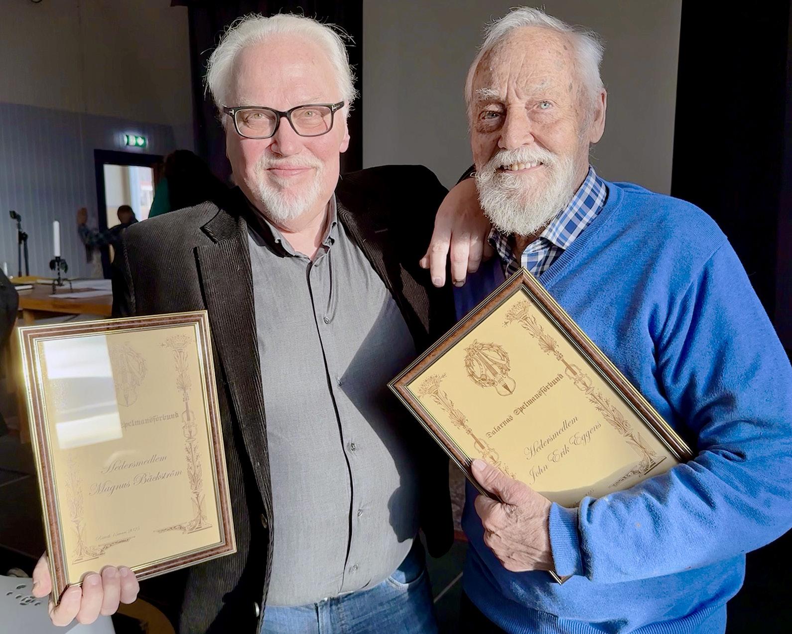 DALARNAS SPELMANSFÖRBUND KAN utse medlemmar som gjort extraordinära insatser för folkmusiken till hedersmedlemmar. Vid årsstämman i Rättvik var det tre medlemmar som förunnades den äran, Kerstin Sonnbäck, Magnus Bäckström och John Erik Eggens har med råge uppfyllt kraven på hedersmedlemskap och blev vederbörligen hyllade.
