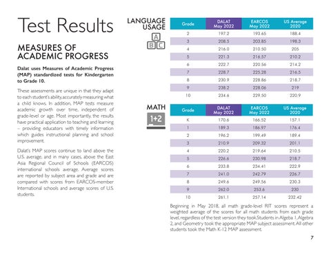 Dalat uses Measures of Academic Progress (MAP) standardized tests for Kindergarten to Grade 10.