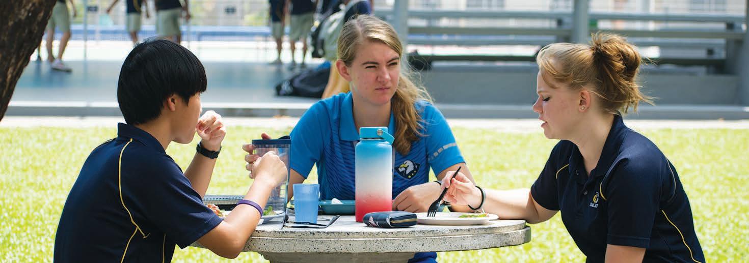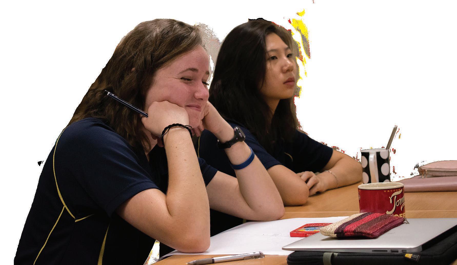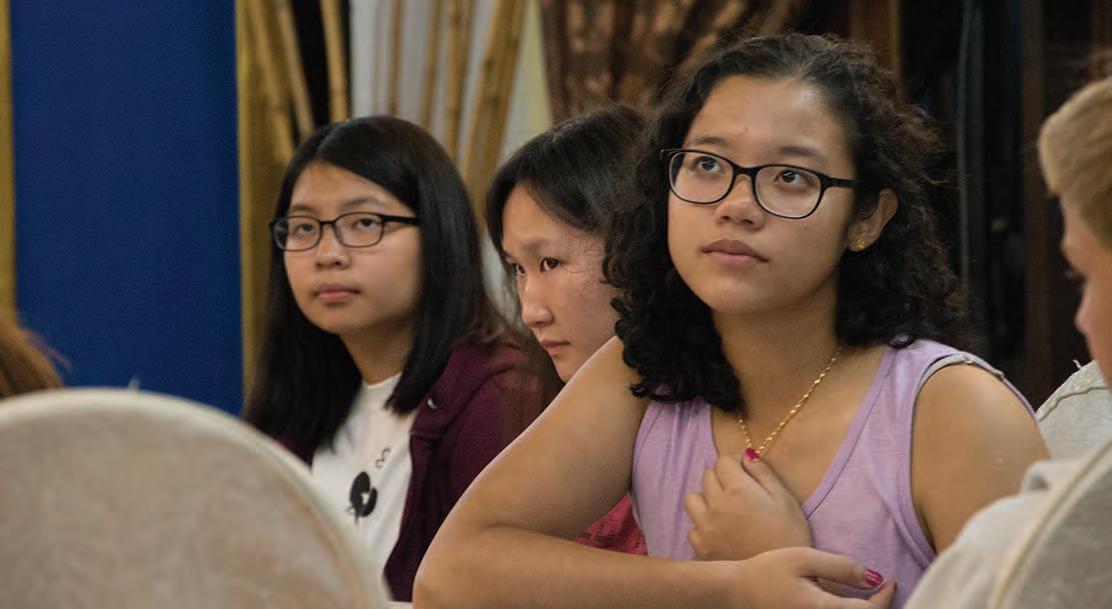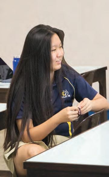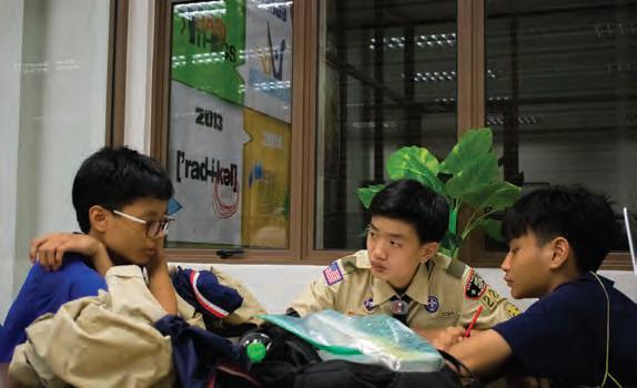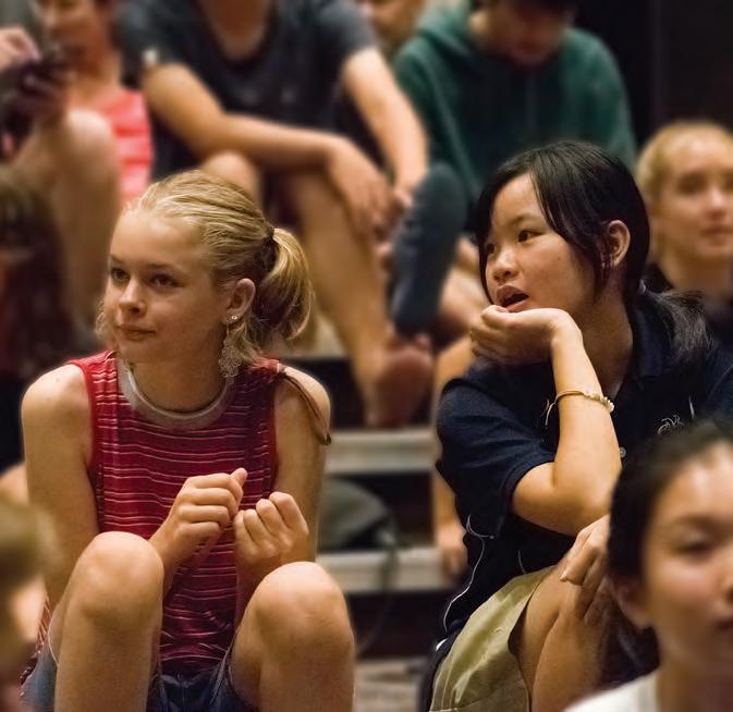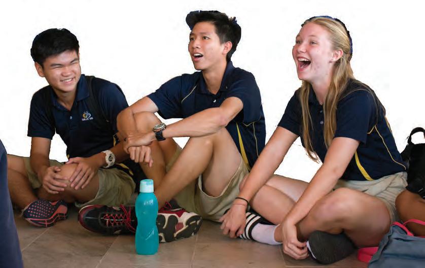 Listening to the speaker, Jia Yi Sim (11), Esther Lo (10), and Mikaela Yeap (11) take in what Mr. Beau Abdulla has to say to the students on the retreat. Around 50 people attended the Leadership Retreat which consisted of class ExComs, Dorm Council, and sponsors. Leaders spent time bonding with one another and looking at the year ahead.