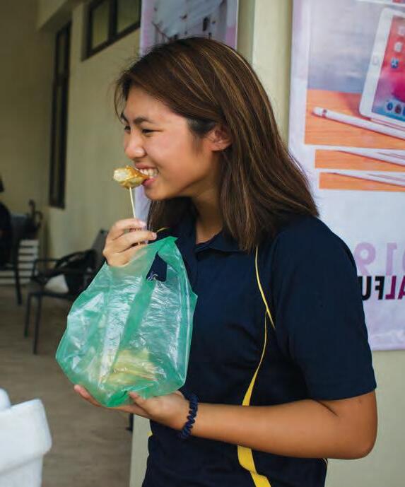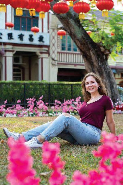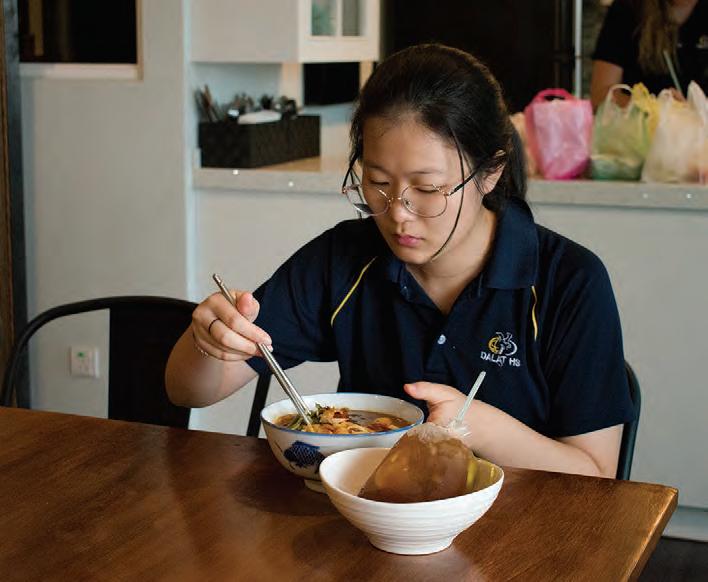 Eyes concentrating on the chopsticks grabbing the slippery noodles, Kyu Hwi Han (9) enjoys her Hokkien Mee breakfast from the market. Ziemer Dorm had a fixed schedule of walking to the morning market for a fresh breakfast on Thursdays.