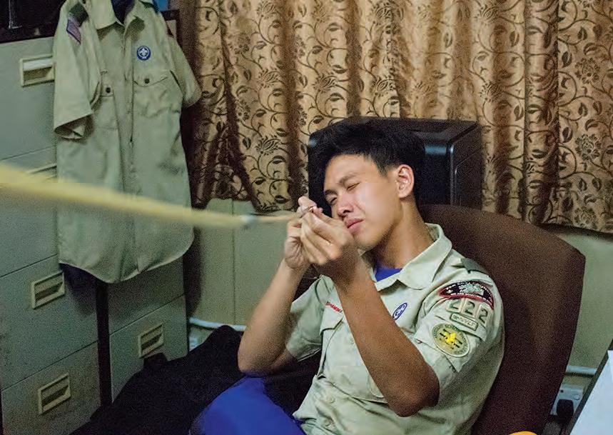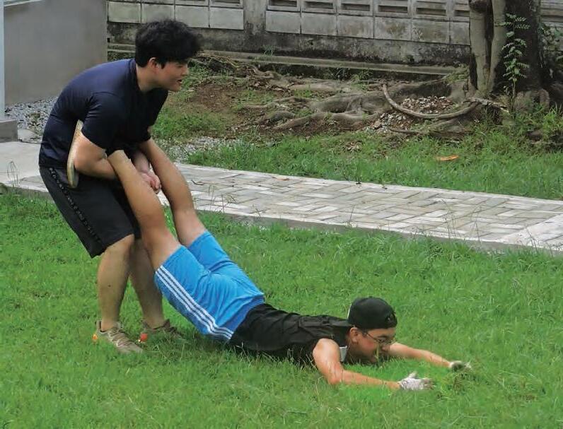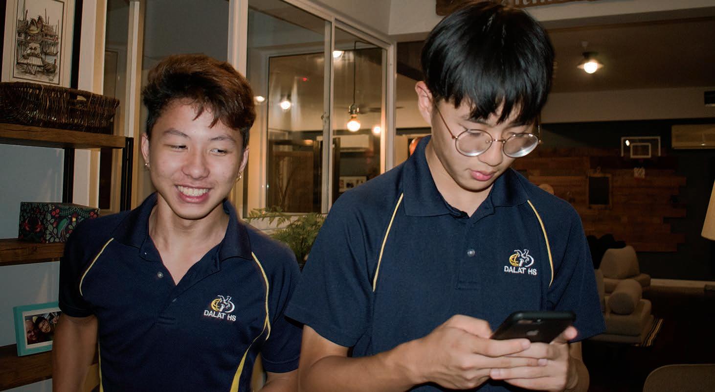 Glancing at Jimin Park’s (11) phone screen, Tawan Teekaariyapak (10) smiles, knowing that his dorm brother’s got game. Dorm kids had to dock their phones before going to bed at 10 p.m., so they rushed to send their “good night” texts to their friends or loved ones as the curfew came closer.