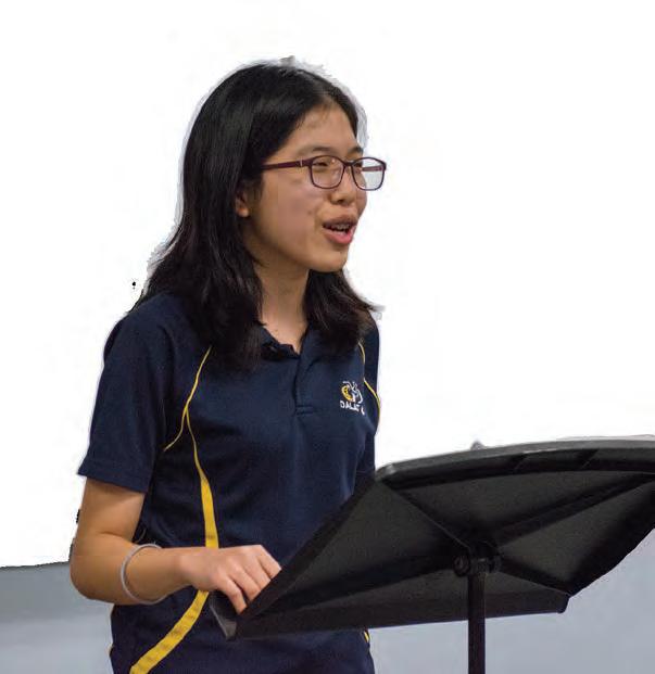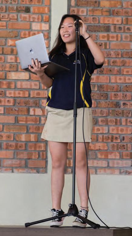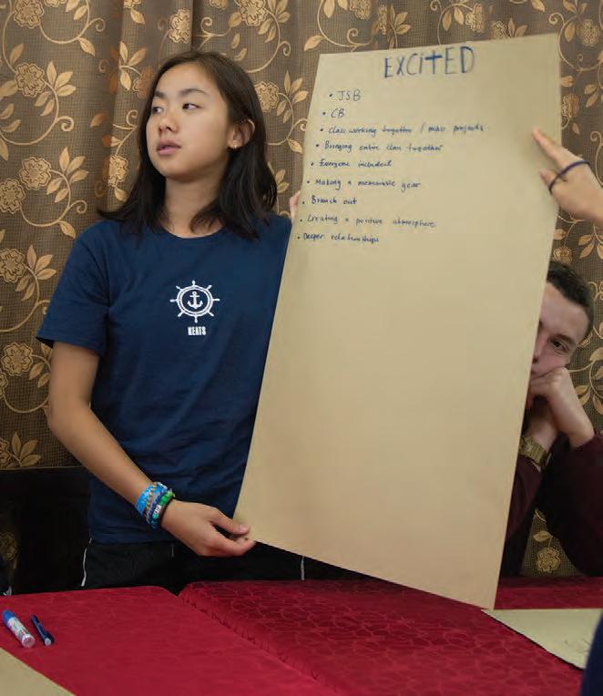 Reading off a list of exciting things for the year, Joycelyn Fung (9) speaks for her table group about the things they are looking forward to. Students had time to write down their excitement and share with others about what events and outcomes they were anticipating for the year.
