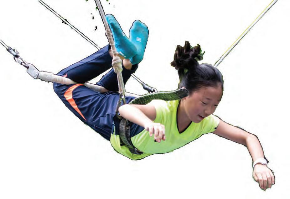 With safe equipment and secure gear, Esther Lim (6), participating in the Aerobat activity, swings through the air with eagerness. Escape Theme Park, a fun location for the middle school retreat, gave students the opportunity to do rare activities that were not accessible in daily life.
