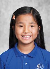 Patiently raising her hand, Jin Lee (2) waits for Mrs. Calah Ronzheimer to call on her. On No Uniform Day, elementary students got creative and wore fun outfits to school. Some wore their favorite outfits while others wore traditional clothing, like a Korean hanbok.