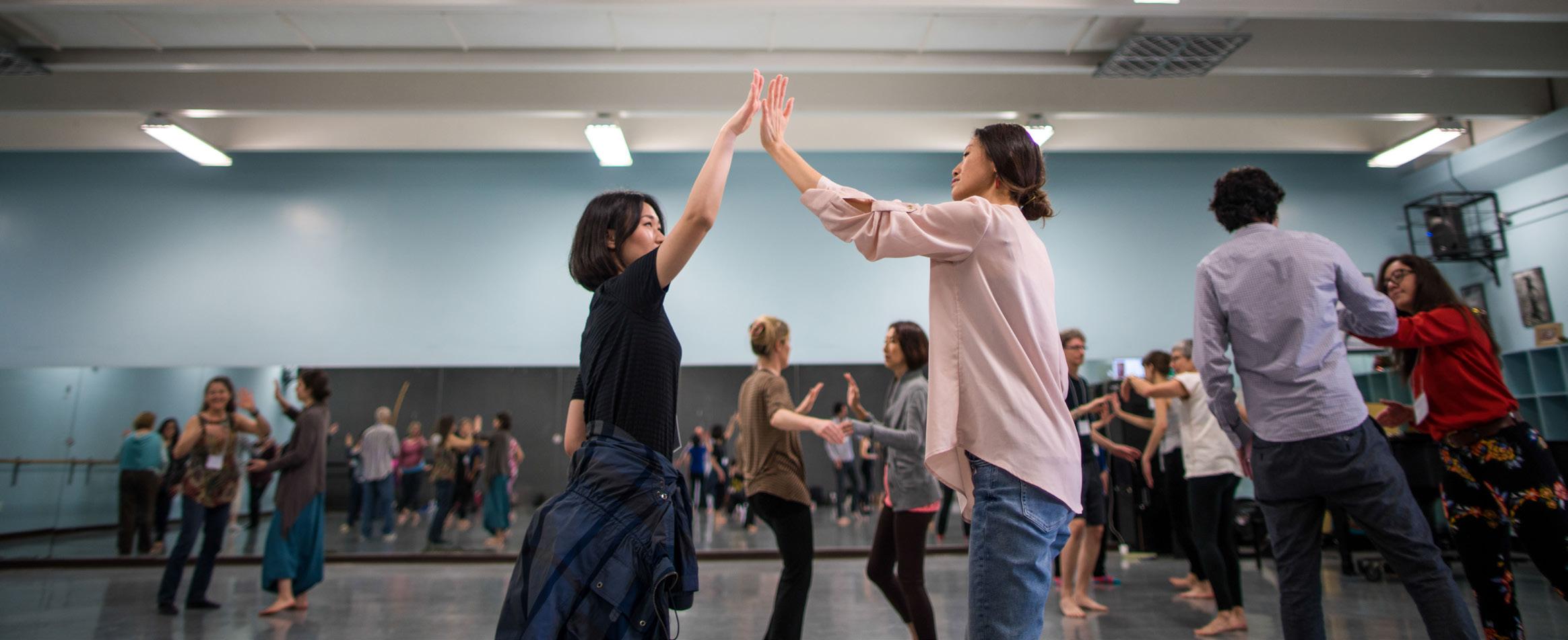 Sometimes, students need ideas to spur their movement vocabulary, and I use an association exercise to lead them down a new path. Most o en this is as simple as asking students to imitate a gesture I create. (Because the association is with gestures, I refer to this as a physical association rather than an association between a musical element.)