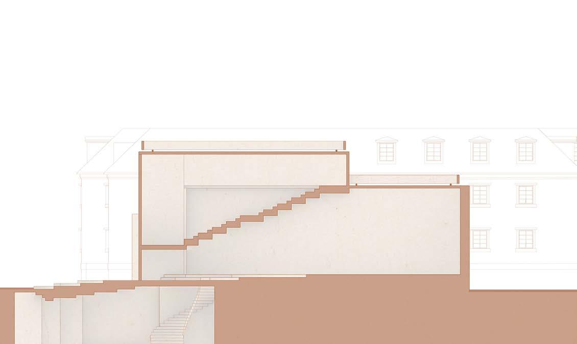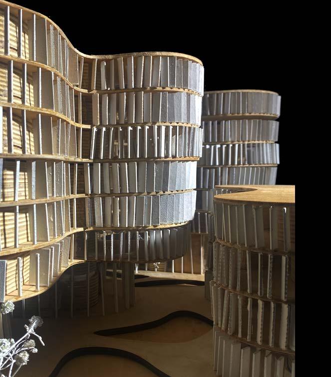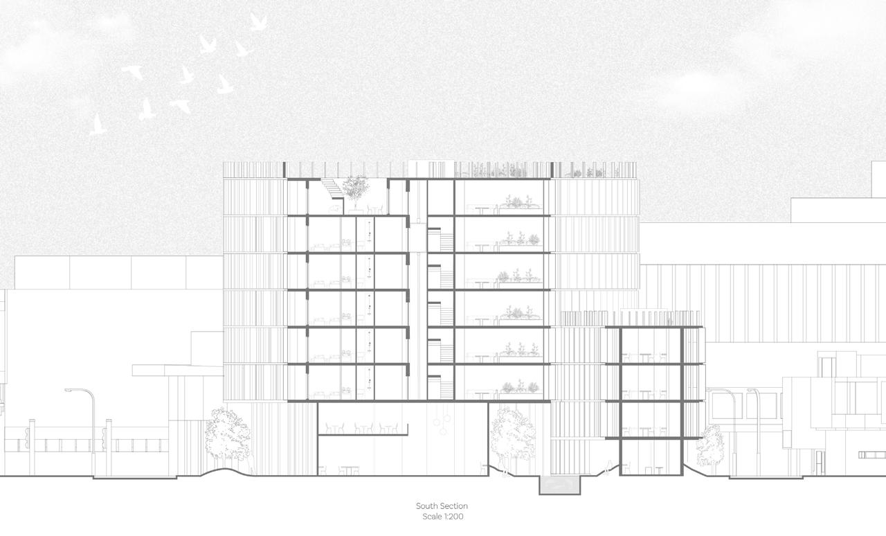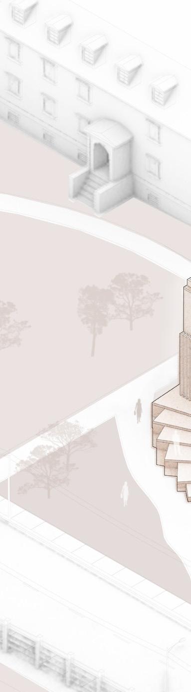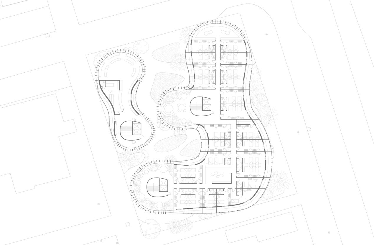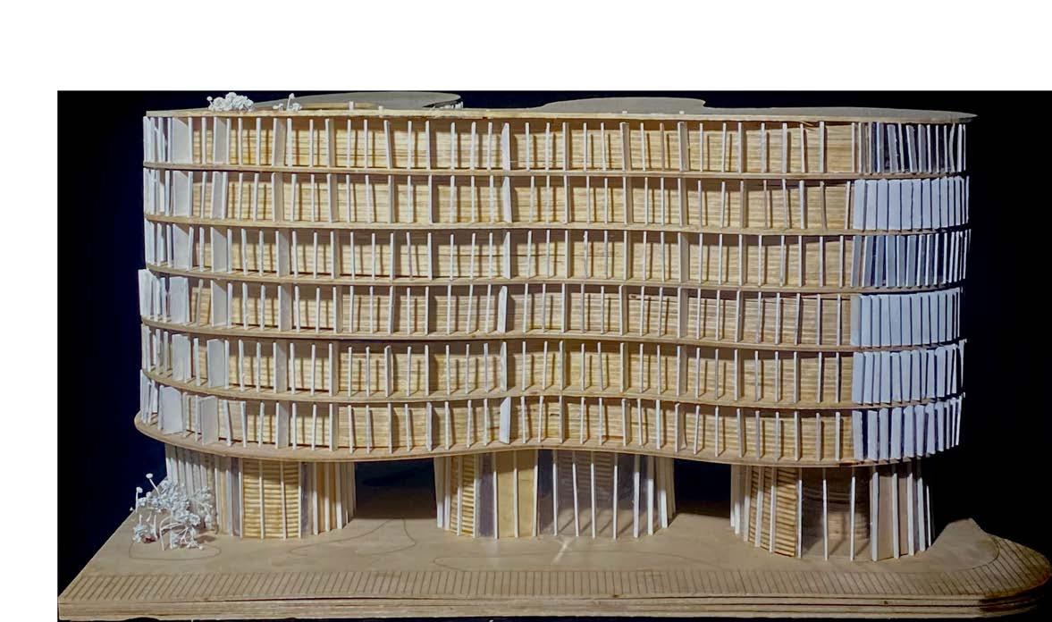 The following analysis (next page) shows all directional movements from each point in the diagram, inspiring the design of stairs and façade.