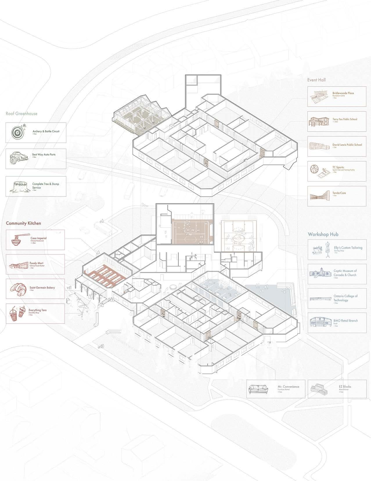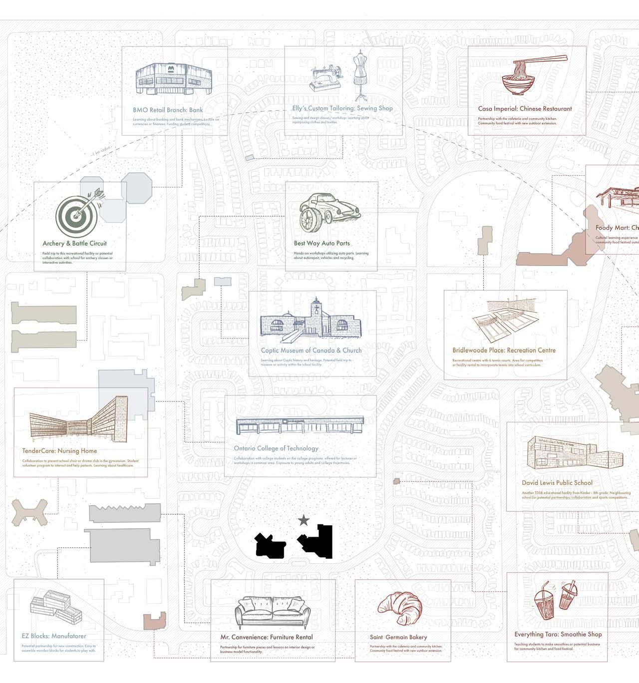 In today’s educational landscape—reshaping how students learn, think, and interact— it’s essential to rethink school design to accomodate the evolving educational system. I n collaboration with the Toronto District School Board, which manages over 500 public schools, this project reimagines common areas into transition points that strengthen connections between students, learning environments, and the broader community to create a more engaging and interactive learning experience.