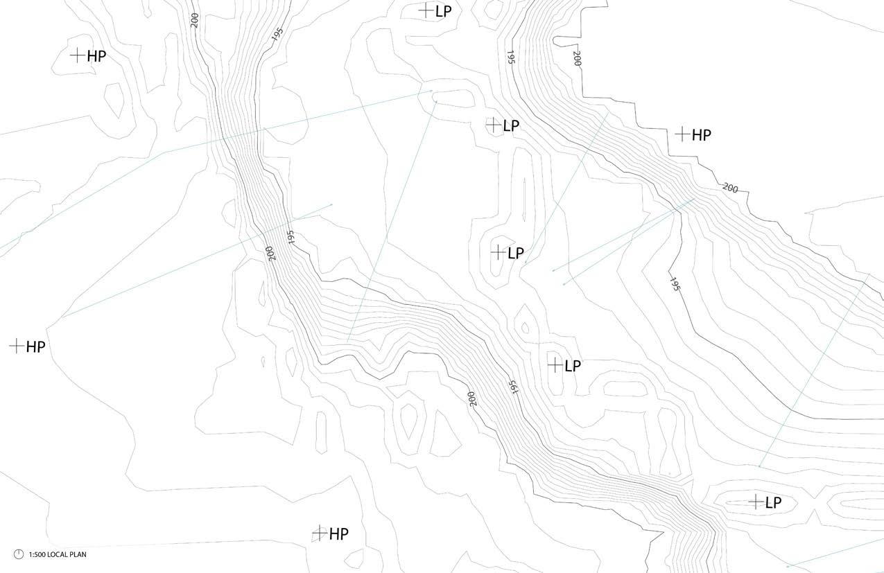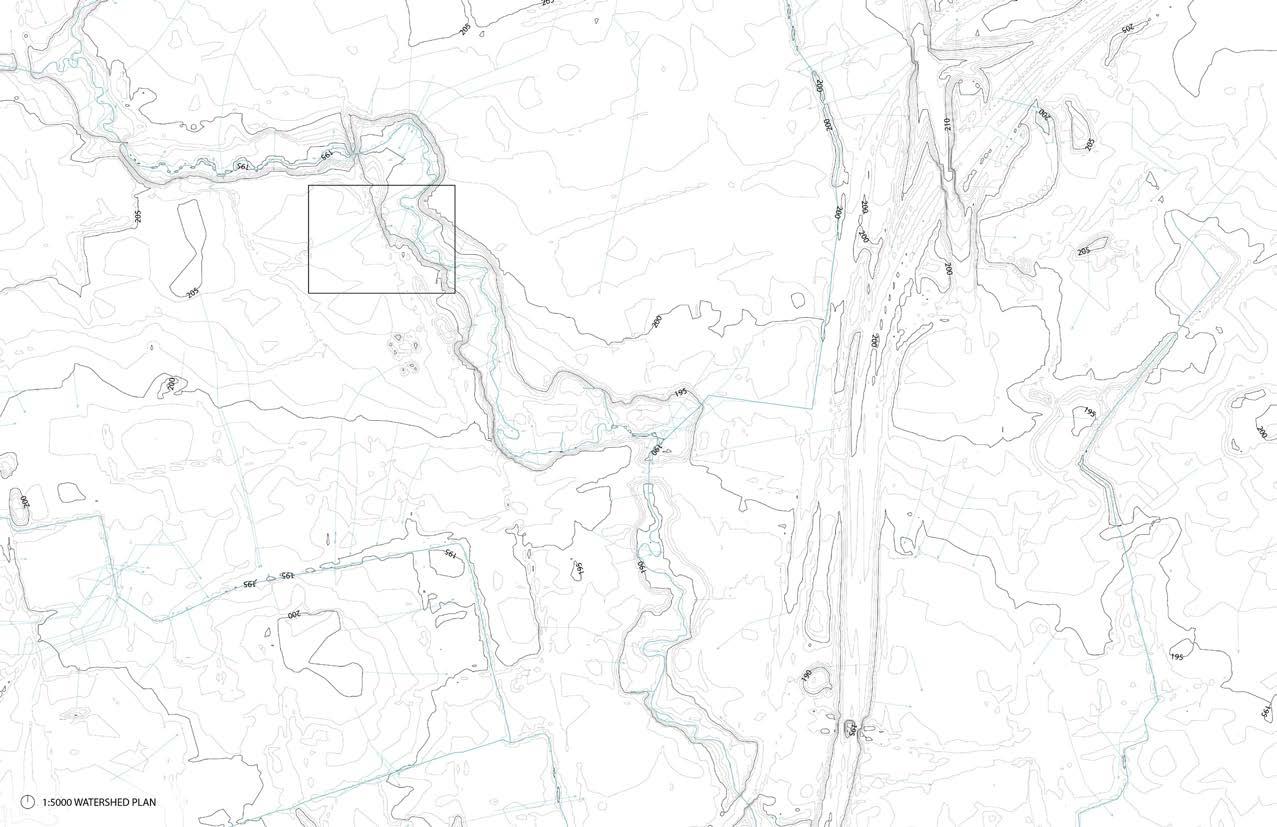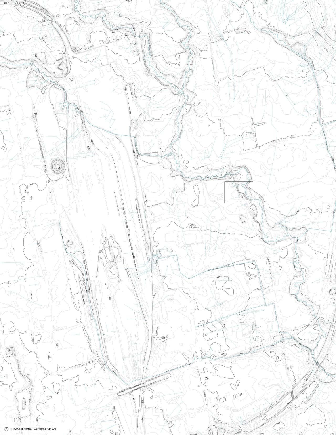 A hydrological analysis of a segment in the Don River Watershed at three different scales to evaluate how topography can improve drainage patterns. The study included a watershed plan at 1:10,000 with 10-meter contours, a regional watershed plan at 1:5,000 with 1-meter contours, and a local plan at 1:500 with 0.5-meter contours, which were used to inform the new grading plan.