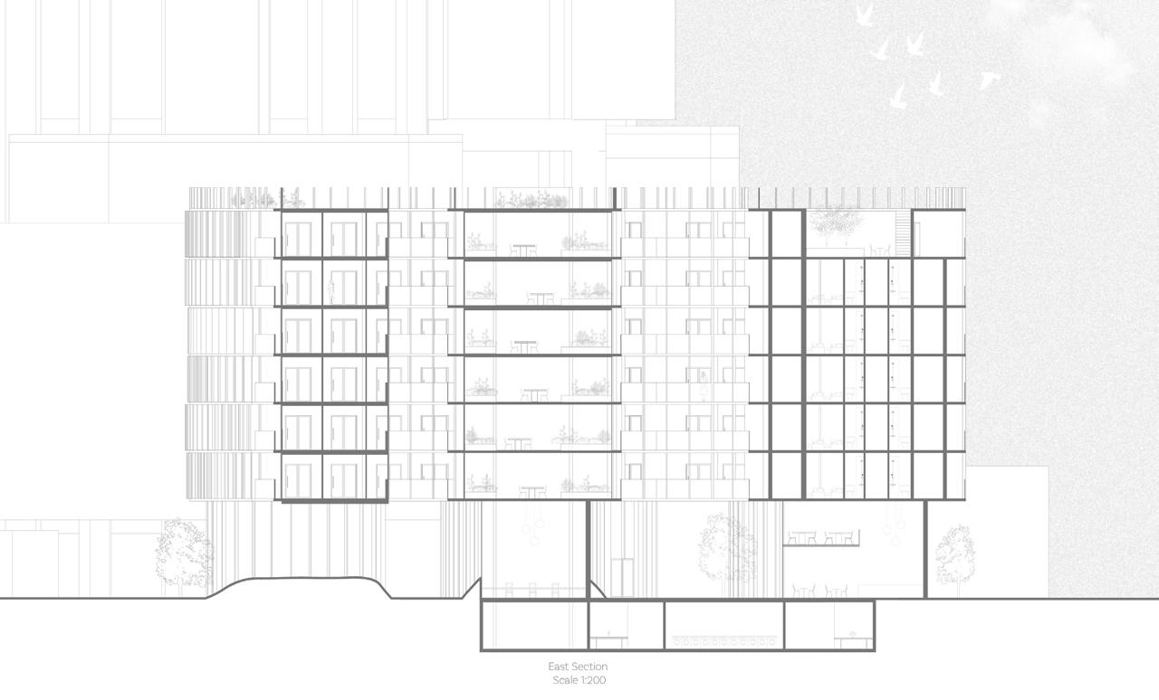 The design derives from the verb “shift.” Every element from the building form—from its volume to the floor plates and façade—is inspired by the concept of shifting, where a simple cuboid transforms into dynamic forms.