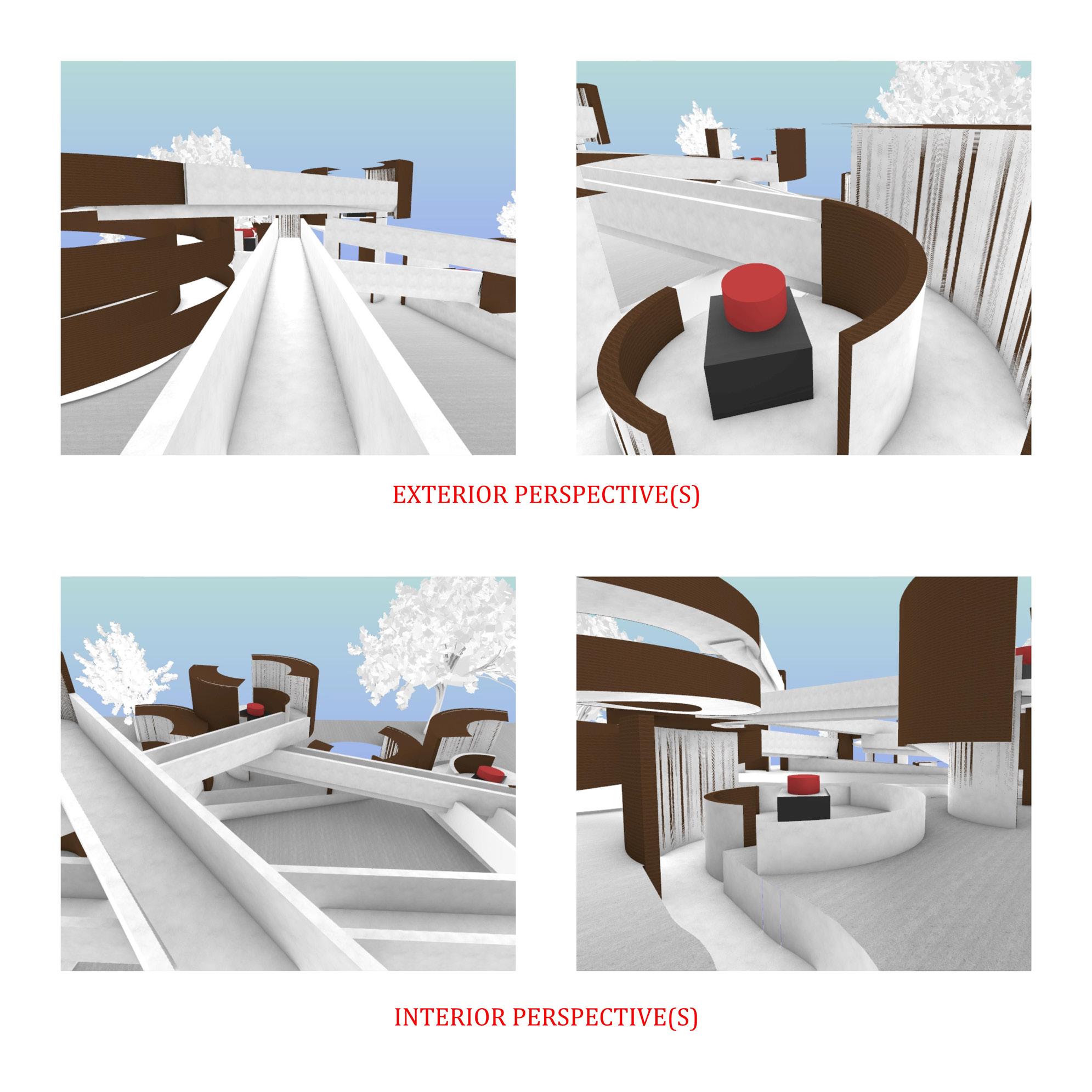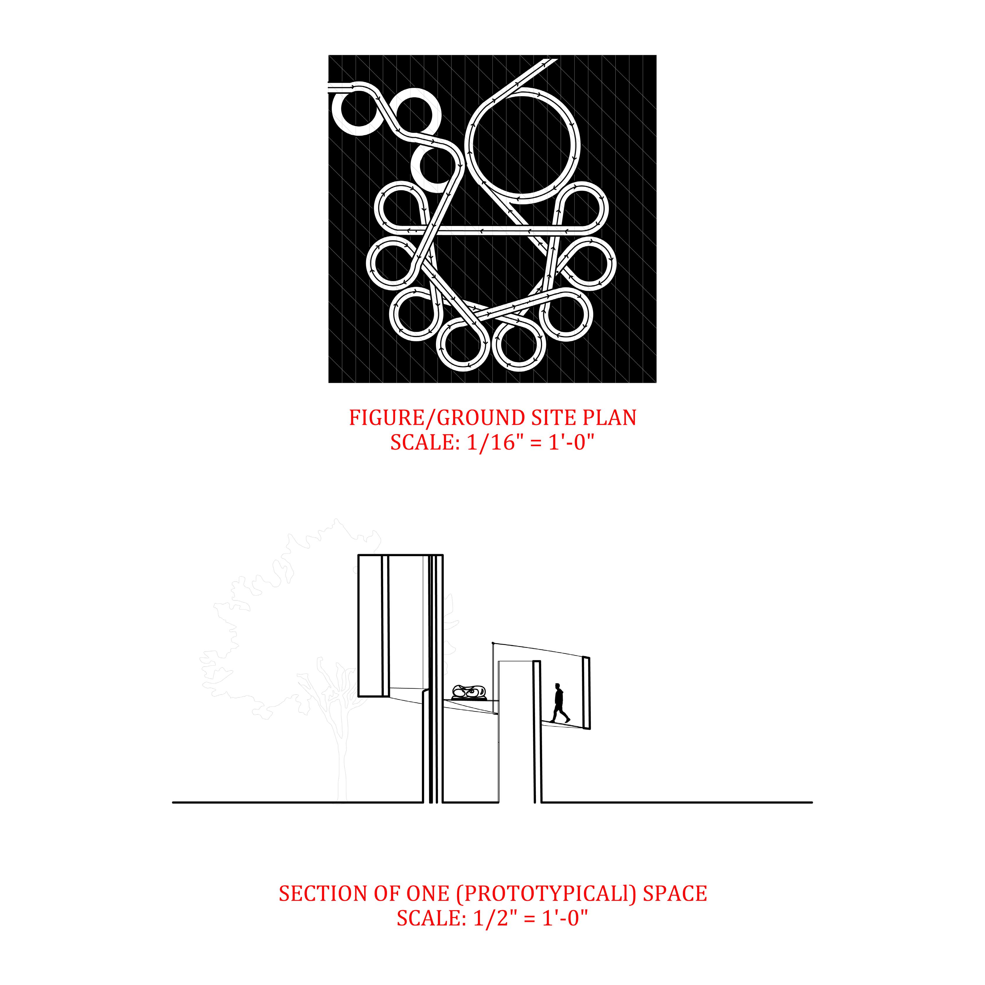 The final site plan was to challenge the way you perceive space and was mainly focused on Hepworth’s idea of circulation. It shows the movement that which an observer would follow, yet it is hard to understand wihtout seeing elevation because a portion of the pavillion is underground. The section and perspectives show more of the pathway the observer would be taking and how it would be for them. I rarely wanted any straight edges to keep the contiguity, yet, the design would not have worked if there was not a break in the sequence (similar to exercise 2).