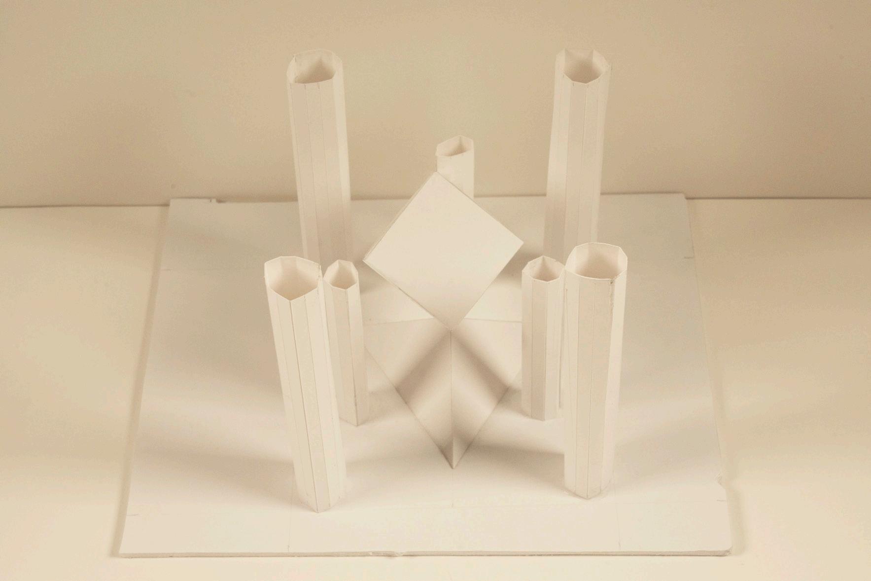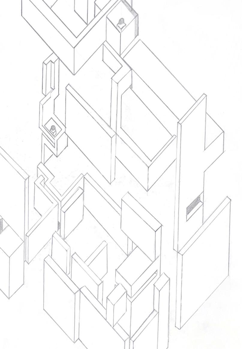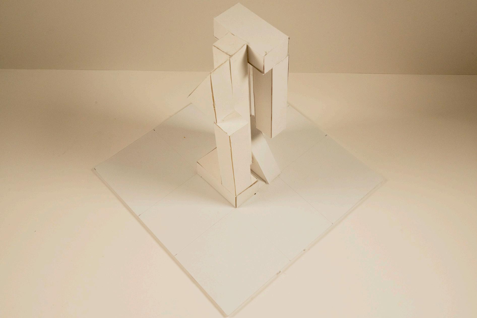 The final physical models were to show the extruding aspect of the shapes. It was to challenge our drawings from 2D to revert it to 3D and make it physically possible to be able to design. The tower design was to show two of the same designs opposing each other. The cube was focused on exentuating the cube in the center through shadows. The pyramid model was more to challenge the idea of gravi ty and attempt to make what is wanted but impossible a reality. As for the plate model, like its digital version, was to follow an idea of parallellism.
