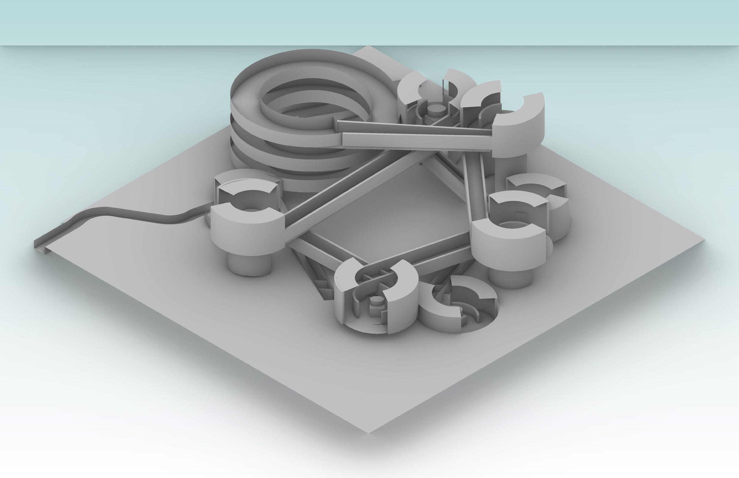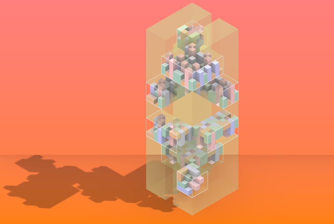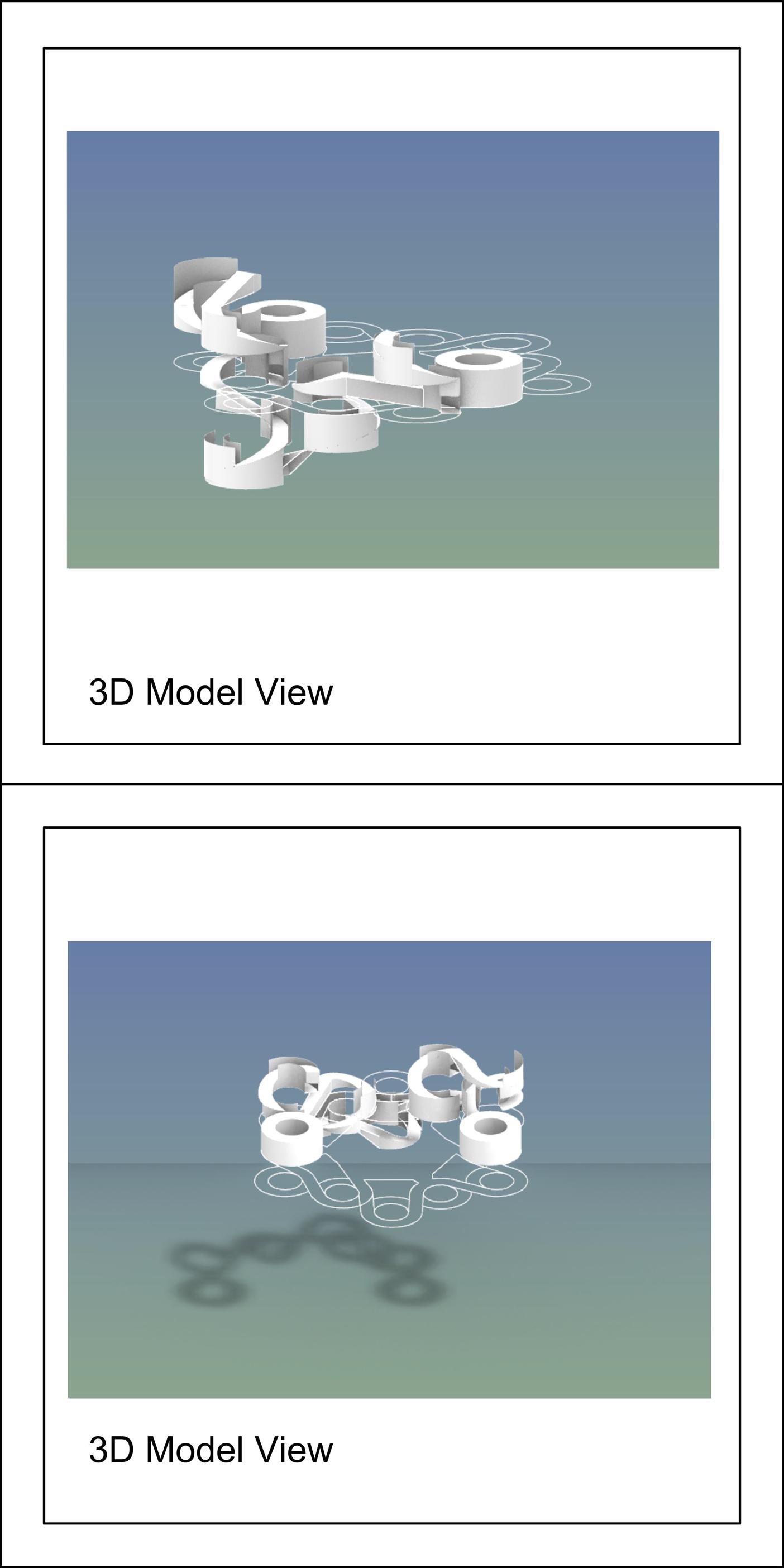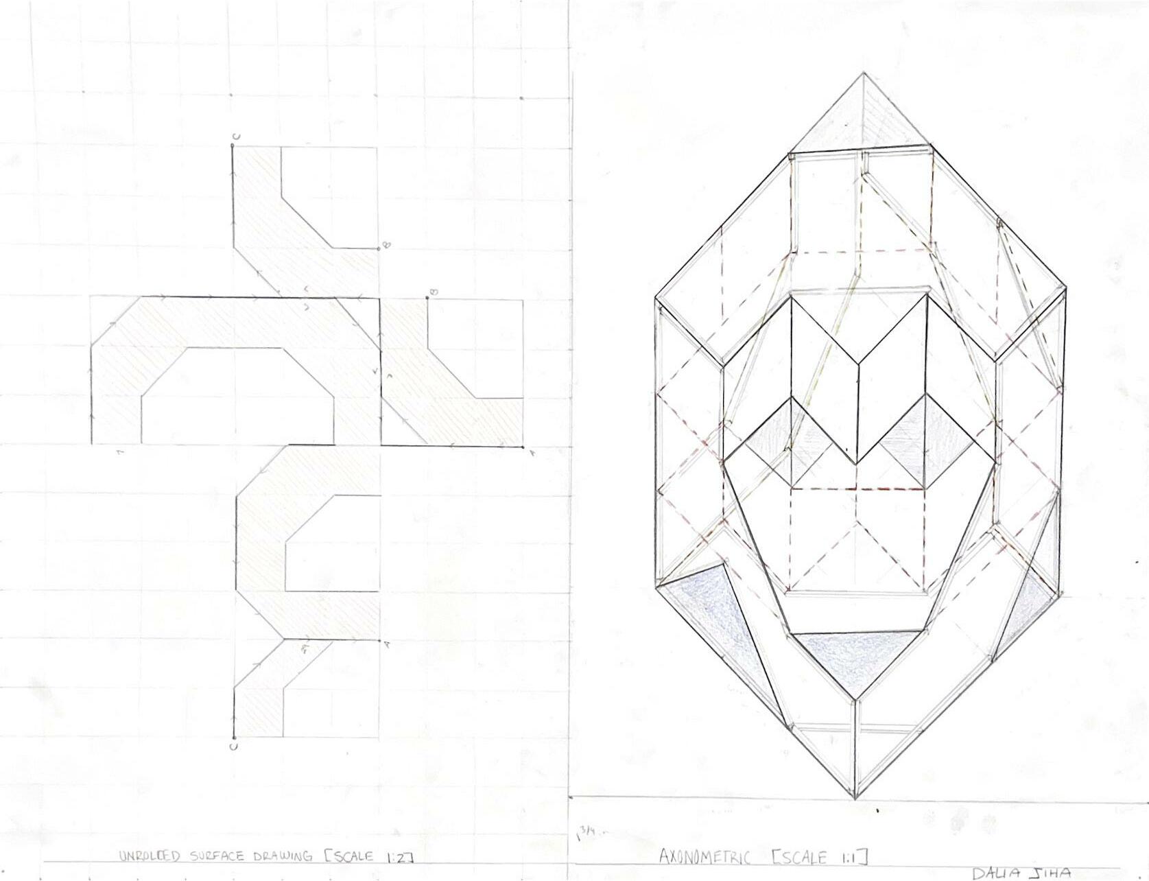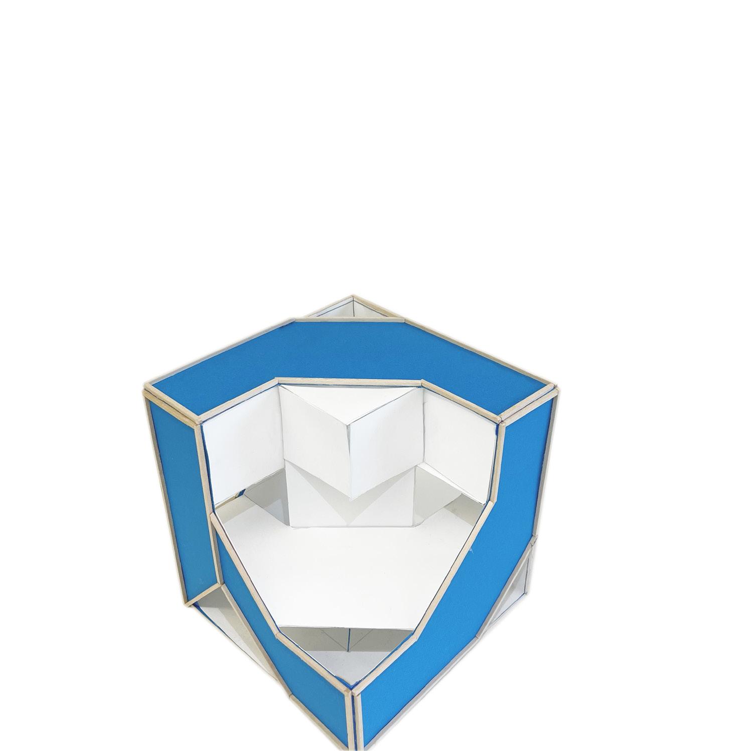The story behind the cube is to show a continous pathway that creates two op posing forces. Model View 1 as the first force, shows an unwelcoming side and closing its pathway, while Model View 2 shows the opened pathway. Together it manifests a protagonist and antagonist that follow the same pathway.