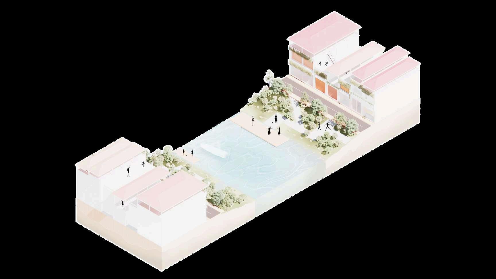 Apply pocket garden and community park along the sewage canal Implement green roof and vertical gardens to increase greenery and propose plants that could contribute to improve air quality