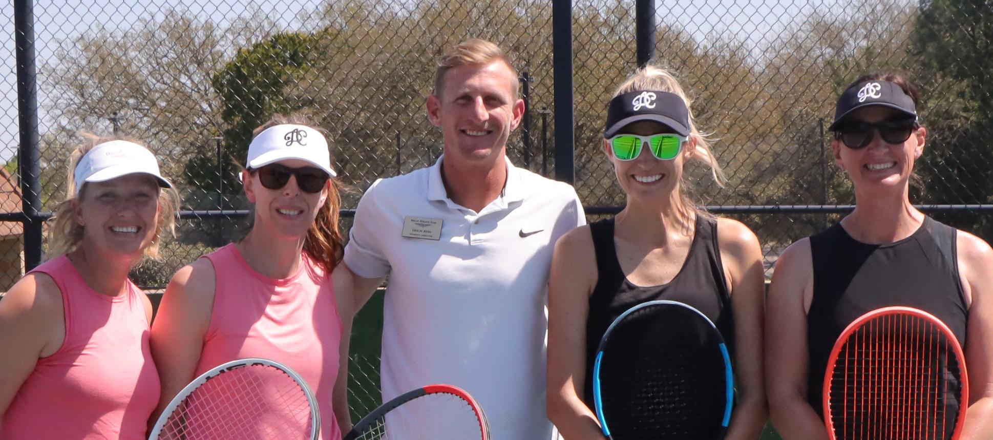 From left to right Lindsey Starnes, Shannon DeVilbiss, Erich Bein, Jacy Russell, and Mary Hope Burns at the 2022 DAC Doubles Club Championship