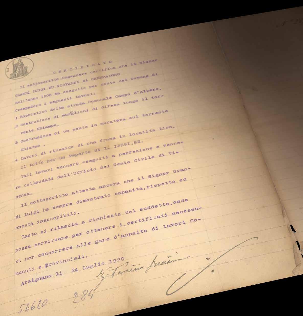 (*) Luigi Grandi, costruttore fin dai primi del ‘900, è il bisnonno materno di Pierpaolo Dalla Verde, che attualmente ricopre l'incarico di Amministratore Delegato e insieme agli zii Nereo e Roberto Dalla Verde, gestisce l’Impresa Costruzioni Dalla Verde S.p.A., fondata nel 1952 dal nonno Domenico