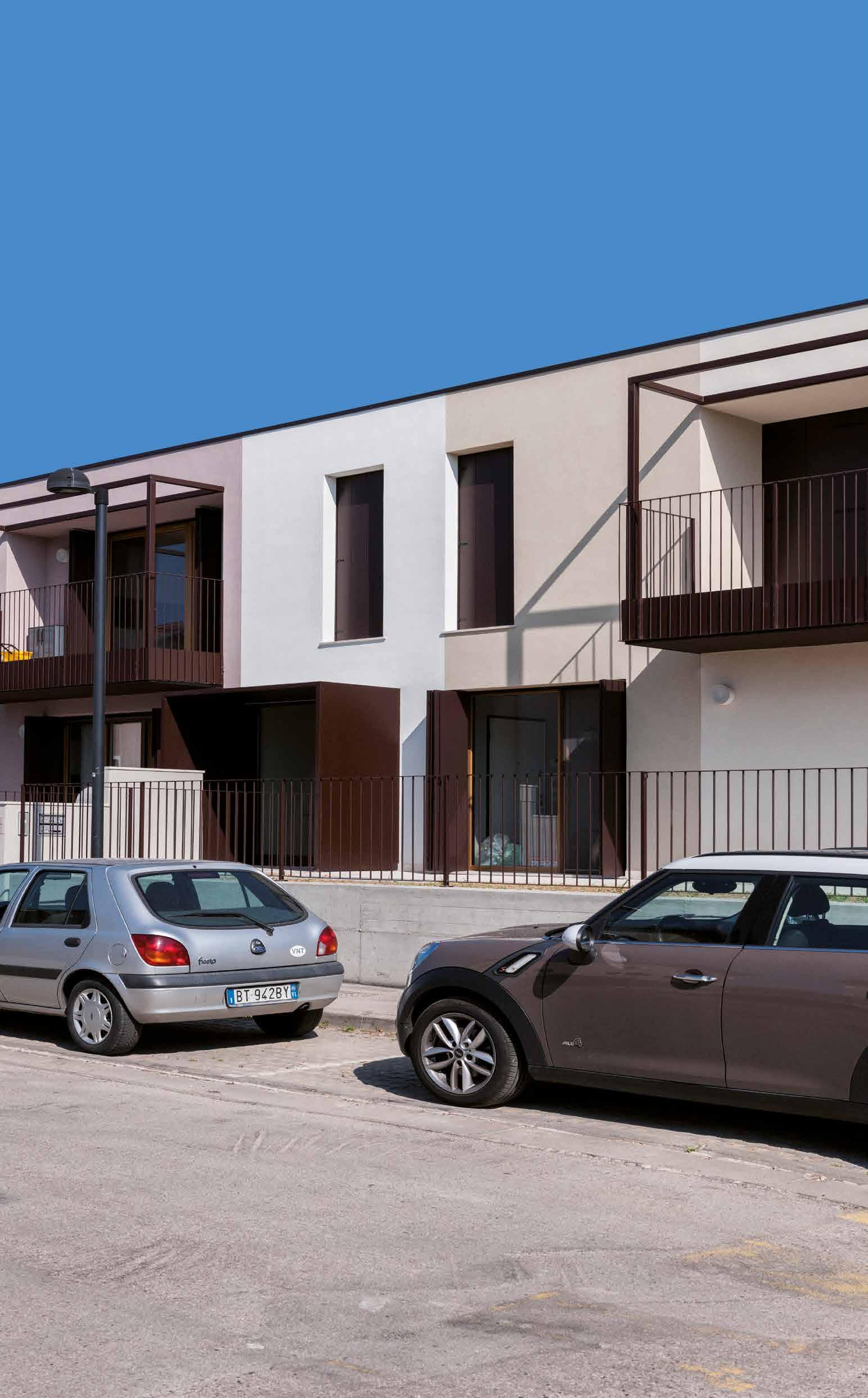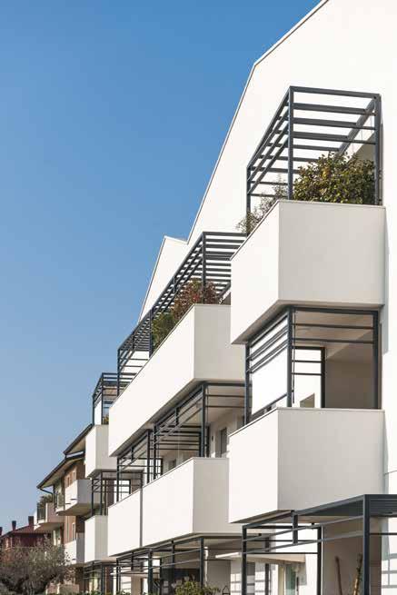 tutta parete uniscono le sale alle numerose terrazze intorno ad ogni lato, in un gioco luci e ombre a garanzia di una inaspettata privacy. L’edificio a misura d’uomo ha ridefinito gli standard abitativi dando il via ad un processo di riqualificazione dell’intero quartiere su cui