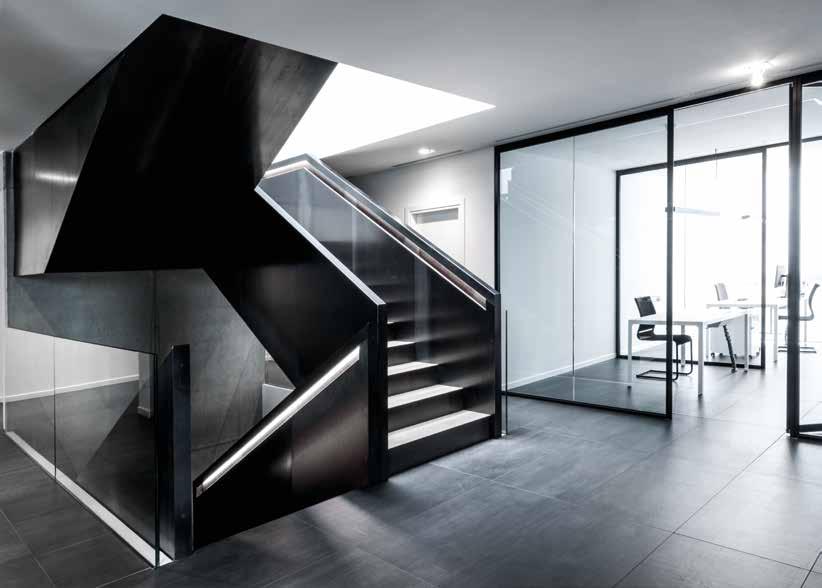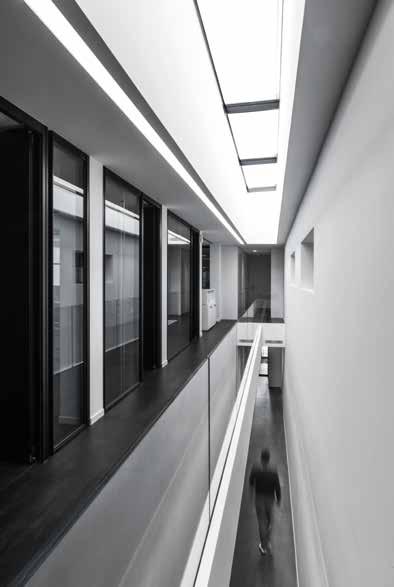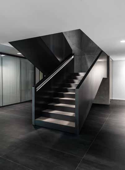 All’interno un attento gioco di doppie altezze articola gli spazi permettendo di sfruttare l’illuminazione naturale per minimizzare l’uso della luce artificiale. Il rapporto tra pieni e vuoti hanno consentito di creare relazioni continue tra gli ambienti interni e l’esterno. Si definisce così un’architettura funzionale che come primo obbiettivo ha il benessere di chi la vive e che in secondo luogo riflette quelli che sono i principi alla base della stessa azienda che rappresenta: trasparenza, solidità, modernità ed equilibrio tra le parti.