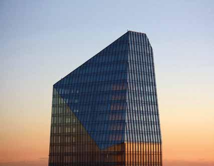 Un edificio polifunzionale unico nel suo genere, a forma trapezoidale, composto da due volumi, differenti per altezza e struttura.