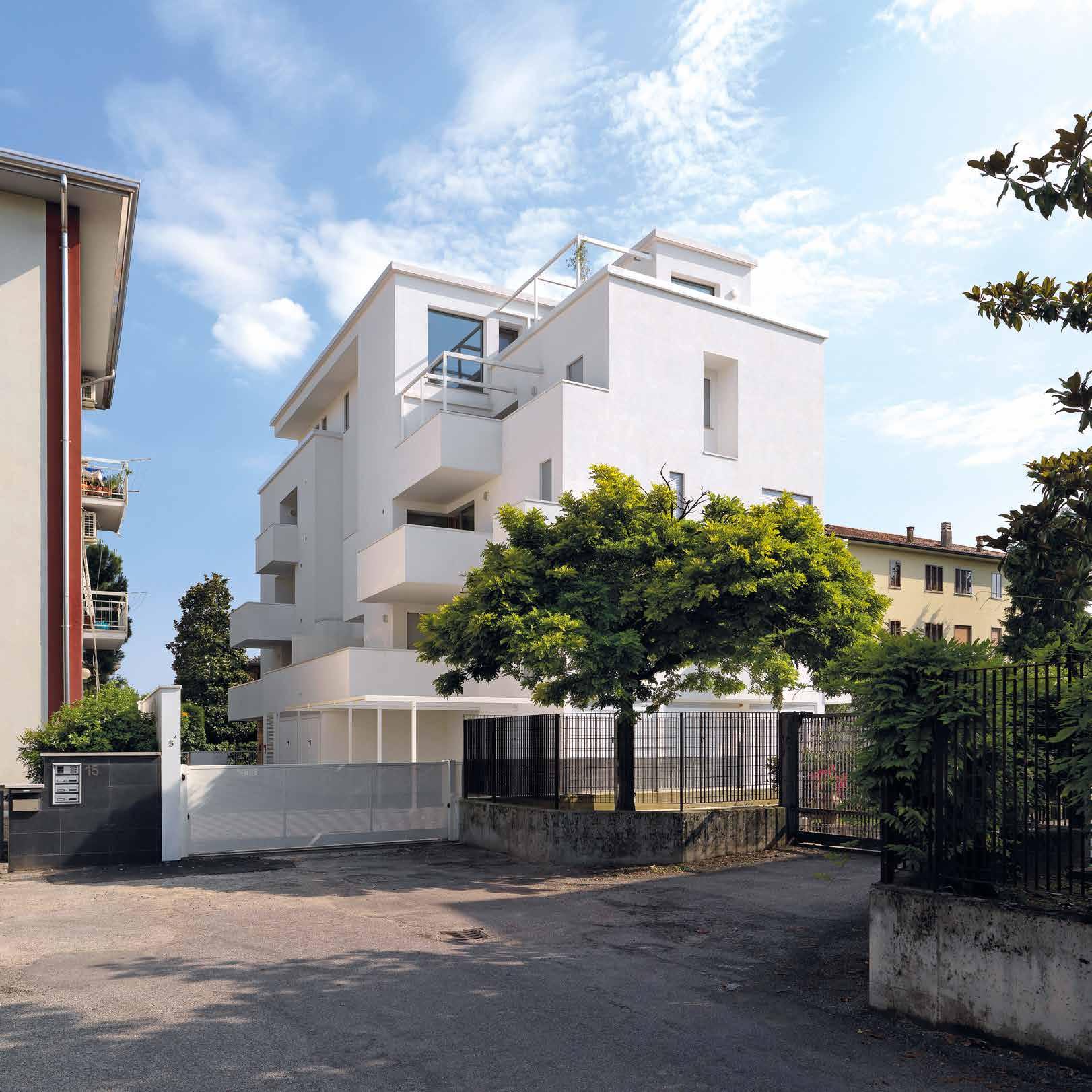 Orientata strategicamente rispetto al sole, con gli ambienti living esposti a sud, Residenze Via Kennedy sorge in un punto di giunzione tra area rurale e il centro urbano di Montecchio Maggiore distante appena poche centinaia di metri. L’architettura spicca con eleganza sul sistema tradizionale delle abitazioni circostanti per il design e i volumi minimali. Le zone giorno generose, i giardini di proprietà e i grandi terrazzi connettono Residenze Via Kennedy al luminoso contesto, con la complicità di un’architettura di grande impatto scenico, mentre la tecnologia della copertura a sbalzo sottolinea l’originalità funzionale. Le 5 soluzioni abitative coniugano la qualità dell’abitare con il lifestyle contemporaneo Smart Living.