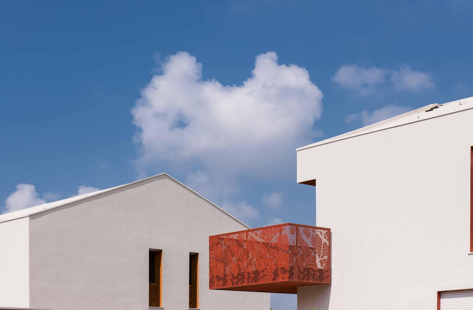 Il progetto di ASA Studio Albanese è quindi riuscito ad integrare il complesso residenziale con una generosa presenza di aree verdi e un collegamento diretto con la pista ciclabile.