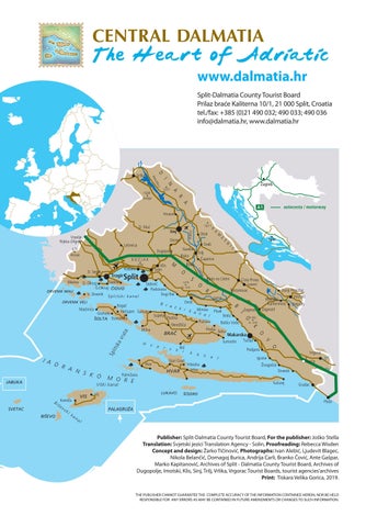 www.dalmatia.hr Split-Dalmatia County Tourist Board Prilaz braće Kaliterna 10/1, 21 000 Split, Croatia tel./fax: +385 (0)21 490 032; 490 033; 490 036 info@dalmatia.hr, www.dalmatia.hr