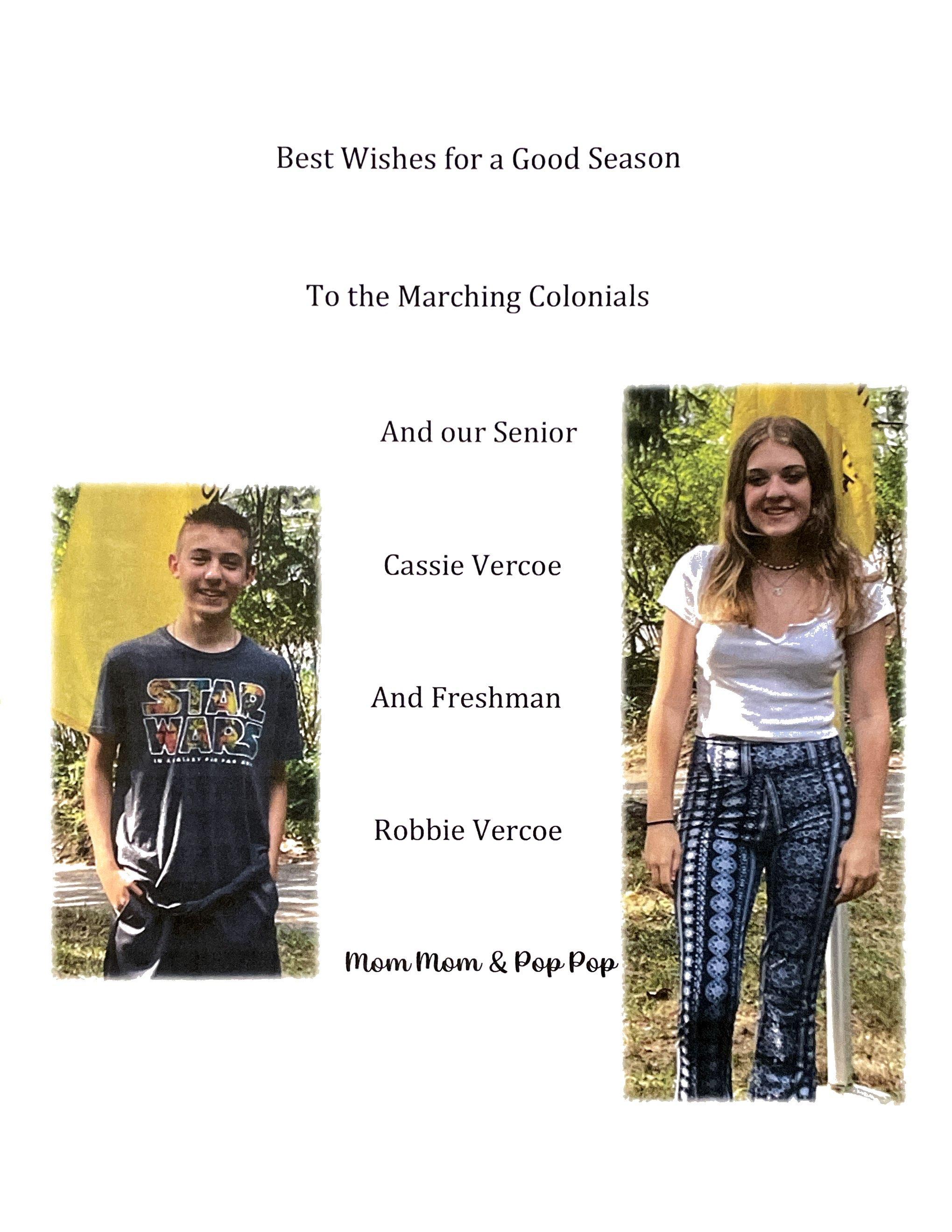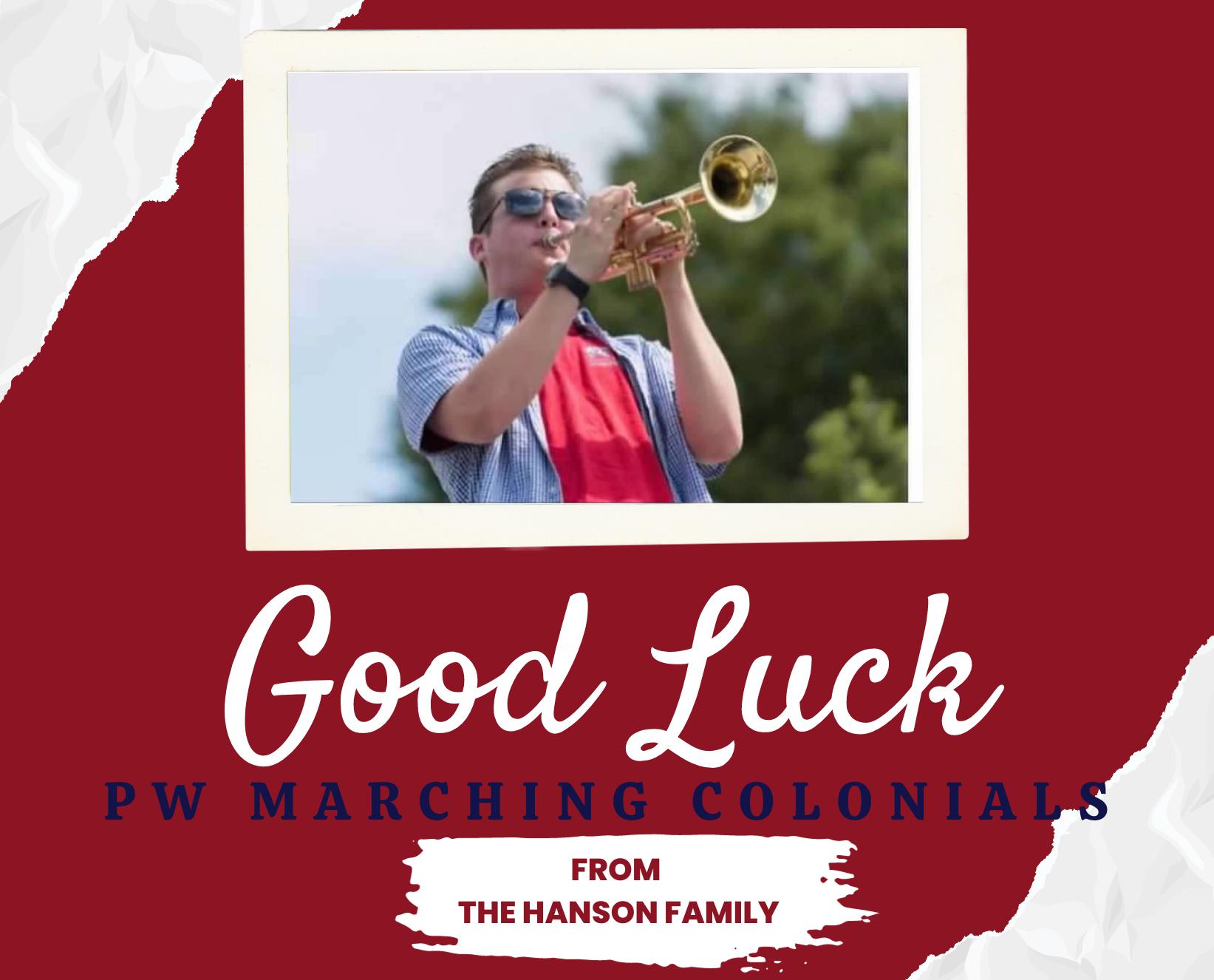 Andrew, we are very proud of your dedication to the PW Marching Colonials over the past 4 years. It has been a true pleasure watching you grow as a musician and a leader. Love,