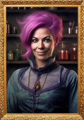 Download the Artivive App (See the QR Code below) and hold your smart phone over the witches portrait below to see her come to life on the page!).