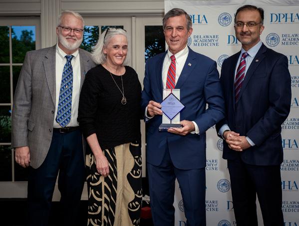 This issue also contains a special section on the 91st Annual Meeting of the Delaware Academy of Medicine / Delaware Public Health Association (see pages 66 to 87). This was a truly unique event, where we piloted a vaccine certification in order to attend, and made available both on-site and on-line options for attendee comfort and safety. For many, this was the first large professional gathering since the pandemic started 15 months ago. By design, the in-person attendance was limited, but with in-person and Zoom attendance we saw a robust and engaged membership. Governor John C. Carney, Jr. and First Lady Tracey Quillen Carney were recognized with the Lewis B. Flinn President’s award for their lifelong work in the fields of education and public health. The Executive Director’s Public Health Recognition was presented to the Delaware Rural Health Initiative and accepted by Division of Public Health Director, Dr. Karyl Rattay. Lieutenant Governor Bethany Hall-Long, a passionate public health advocate, provided opening comments to the audience, and the keynote speaker, Dr. Geoff Tabin wrapped up the evening with an inspiring lecture on overcoming obstacles, be they mountains or healthcare.