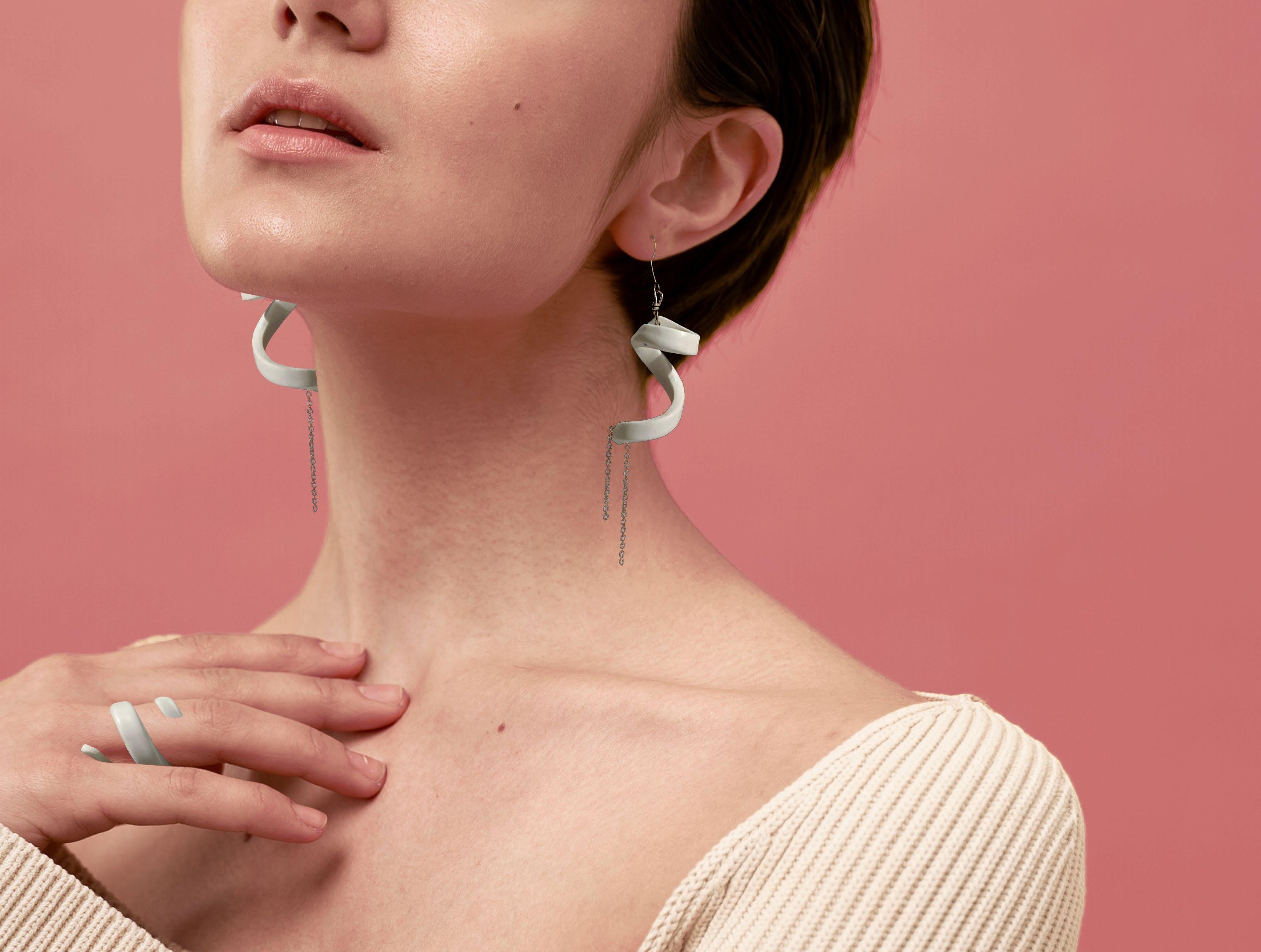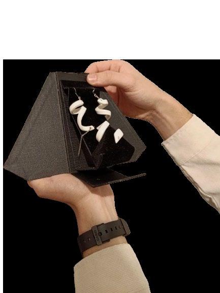 Creación de una colección de joyería contemporánea utilizando el material Krion, seguida del diseño de un empaque de exhibición para las piezas.