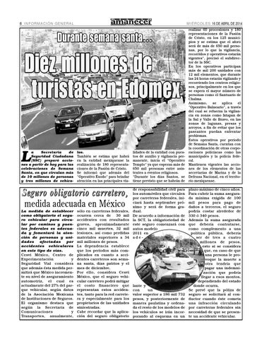 los. También se estima que habrá en la entidad mexiquense la realización de 180 representaciones de la Pasión de Cristo. Se informó que además del "Operativo Éxodo" para brindar atención en las principales via-