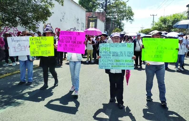 Alrededor de 3 mil trabajadores marcharon por las principales calles de Toluca para exigir el pago de diversas prestaciones,el paro continúaen hospitalesycentrosdesalud