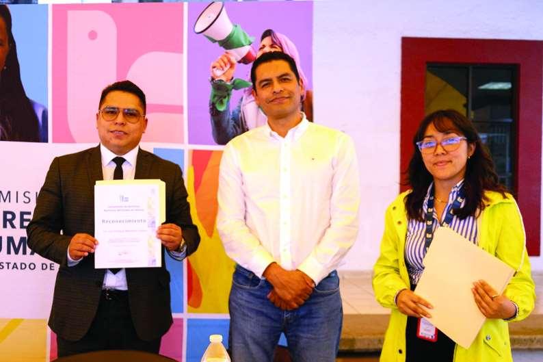 LaComisióndeDerechosHumanosdel EstadodeMéxico(CODHEM)presentó enelPalacioMunicipaldeXonacatlán,el libroTusobligacionesen…materiadetrabajo yseguridadsocial,conlaparticipacióndela doctoraGabrielaAlejandraSosaSilvayde EmmanuelMayaGutiérrezcomopanelistas,así comoeldefensormunicipalEnriqueMendieta, comomoderador,enelmarcodelasjornadas itinerantesdesocializacióndepublicaciones. AntealumnasyalumnosdelaUniversidadAlfa Lambda(UAL)deXonacatlánypúblicoen general,laylosponentescomentaronqueel librodesatacalaimportanciadeconocerlos derechoslaboralesydeseguridadsocial comobaseparaexigirsucumplimiento,así comoelpapelquedesempeñanlasinstitucionesenesadefensa.Asimismo,dijeron,aborda losalcancesdelareformalaboralylatransicióndelajusticialaboralalPoderJudicial. LadoctoraSosaSilvaexplicóque,ensucalidaddeorganismoconstitucionalautónomo,la CODHEMtienetambiénlaresponsabilidad deinvestigarlasposiblesviolacionesaderechoshumanosderivadasdelasquejasen materiadetrabajoyseguridadsocialcomo partedesuobligacióndetutelanojurisdiccionaldelosderechoshumanos,conformelo determinalaleyenlamateria. Enestecontexto,laespecialistaycoordinado-
