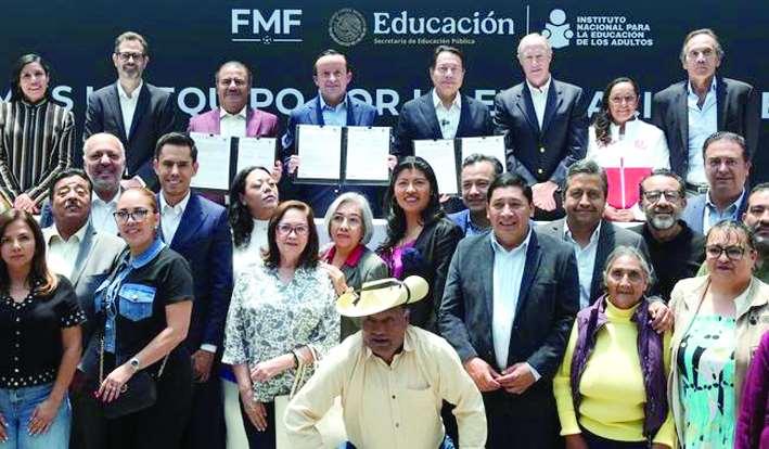 Conelobjetivodereducirelanalfabetismo ypromoverelderechoalaeducaciónen personasmayoresde15años,la FederaciónMexicanadeFutbol(FMF),la SecretaríadeEducaciónPública(SEP)yel InstitutoNacionalparalaEducacióndelos Adultos(INEA)firmaronunconveniodecolaboraciónylanzaronunacampañanacionalque aprovecharáelpoderdeconvocatoriadelfutbol mexicano.