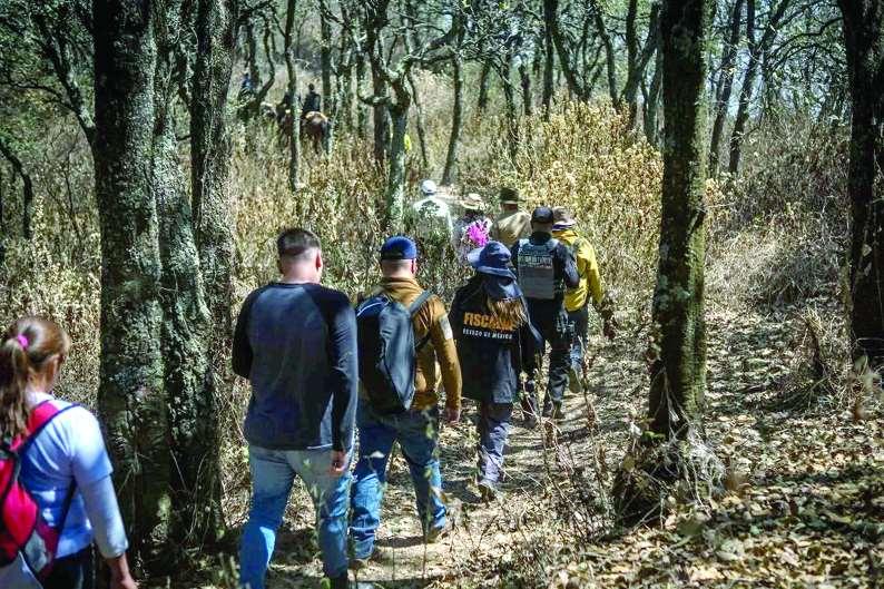 Laestrategiaincluyelaparticipacióndepersonalforense,antropólogos,policíasdeinvestigación, elementosdeproteccióncivily voluntarios,quienesseencargan derecorrerveredas,revisarzonas boscosasyanalizarelterrenoen buscaderestoshumanos,objetos personales,ropauotrosindicios quepuedanesclarecerelparadero delaspersonasdesaparecidas,la coordinaciónentreinstituciones permitequecadahallazgoseprocesedeinmediatoparaasegurarla cadenadecustodiaybrindarcertezaalosfamiliares.