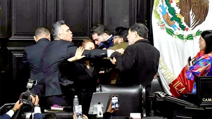 Los reclamos verbales subieron de tono en segundos hasta convertirse en un enfrentamientofísico.Testigosrelataronque Morenose acercó a la Mesa Directiva y fue recibido con empujones por parte de Noroña. Acto seguido, ambos comenzaron a jalonearse ante la mirada incrédula de legisladores y asistentes.