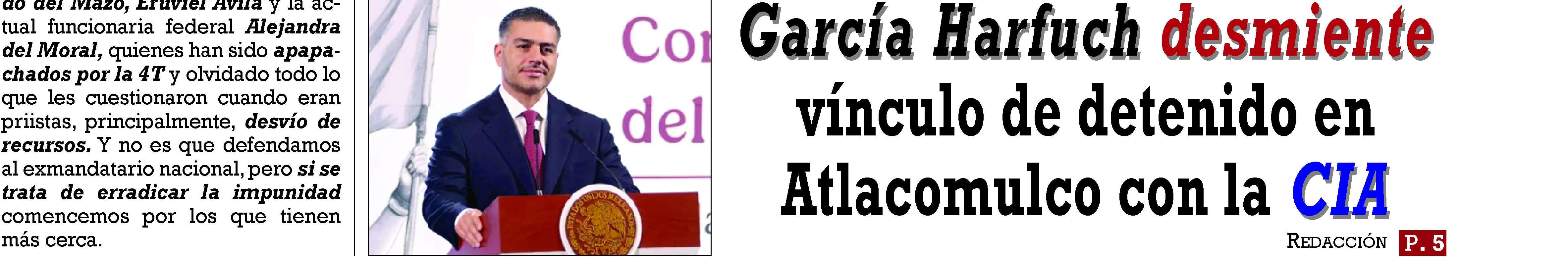 lsecretariodeSeguridady ProtecciónCiudadana,Omar GarcíaHarfuch,aclaróqueelciudadanoestadounidensedetenidorecientementeenAtlacomulco,Estadode México,nopertenecealaAgencia CentraldeInteligencia(CIA)nianinguna otrainstituciónoficialdelgobiernode DurantelaconferenciamatutinaencabezadaporlapresidentaClaudia Sheinbaum,Harfuchexplicóqueelindividuofuevinculadoaprocesoporportacióndearmasdefuegoyseleinvestiga porposiblerelacióncongruposdelictivos queoperanenlaregión.Ladetención ocurrióelpasadofindesemana,cuando elementosdelaSecretaríadeSeguridad delEstadodeMéxico,encoordinación conlapolicíamunicipal,interceptaronal sujetoportandodosarmaslargas,cuatro armascortas,másdeciencartuchosútiles,cargadoresyequipotáctico.También selehallóunasupuestacredencialquelo identificabacomoagentedelaCIA. Elfuncionariodetallóque,trassuaprehensiónyvinculaciónaproceso,senotifi-