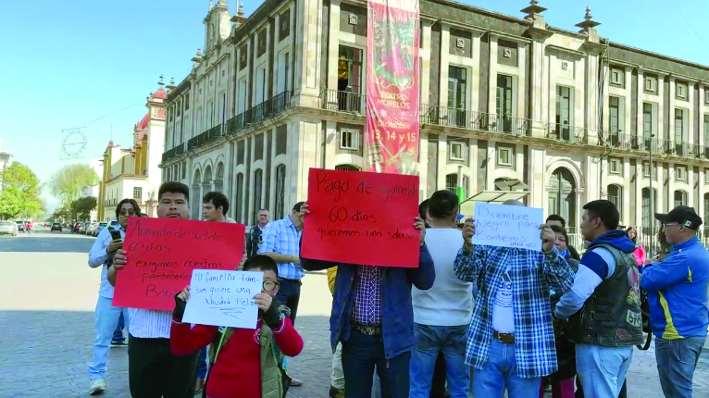 Con pancartas en las que se leía "Diciembre negro para bomberos otra vez", "mi familia también quiere una Navidad feliz", "Exigimos nuestras prestaciones dignas", y "pago de aguinaldos",entreotras,loselementosdeprotección civil y bomberos, denunciaron también que les ha tocado realizar tareas quenolescorresponde,ademásdequeno es la primera vez que se les han atrasado lospagos.Porello,hicieronunllamadoala gobernadora Delfina Gómez para que les