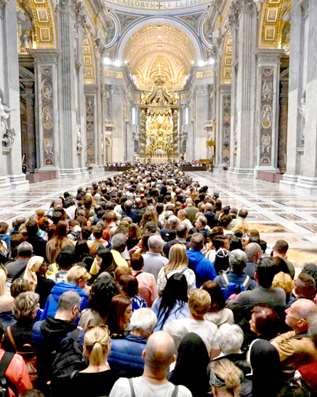 as filas de fieles creyentes se hacen interminablesyparecenampliarseconelpasodelos minutos previos a que sea cerrada al público la capilla ardiente instalada en la Basílica de San Pedro, en Roma Italia, en donde permanece el féretro del papa Francisco.