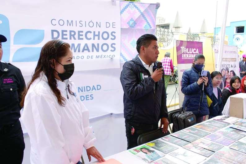 Enestecontexto,elauditorioinflabledenominado DomodelosDerechosHumanosdela hallegadohastamunicipioscomoHuehuetoca, dondeseimpartieronaccionesdesensibilización conlassiguientestemáticas:Convivenciaescolar yculturadelapaz,DerechosHumanosdeNiñas, NiñosyAdolescentes,ComunicaciónFamiliary DerechosSexualesyReproductivos. Asimismo,enlasdelegacionesdeSanPablo AutopanyCapultitlán,municipiodeToluca,se impartieronaccionesdesensibilizaciónsobre ViolenciaDigital,SaludMental,Acosoescolaren lasadolescenciascondiscapacidady Discriminaciónporedadenlavejezy,enSan MateoOtzacatipan,lostemasdesensibilización versaronsobreAutoestimaenlasPersonas AdultasMayores,AcosoEscolarenlasInfancias conDiscapacidadyDiscapacidadeInclusión. Igualmente,elDomodelosDerechosllegóal municipioconurbadodeEcatepecdeMorelos, dondeseimpartieronaccionesdesensibilización acercadelAcosoescolarenlasadolescenciascon discapacidadycomopartedelacapacitacióna personaldeseguridad,enlosmunicipiosde HuehuetocayTexcalyacacsecapacitóacasi400 personassobreCadenadeCustodia,Usodela fuerzaconapegoalosderechoshumanos(Ley NacionalSobreelUsodelaFuerza),Acosoy hostigamientosexualyCódigodeÉticadelasy losServidoresPúblicosdelEstadodeMéxico.