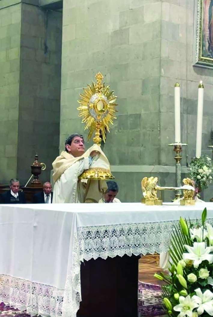 "HoycelebramoslaSolemnidaddelCuerpo ySangredeCristo,undíaparareflexionar sobreelamorinmensodeJesúspresenteen laEucaristía",indicoensuhomilía,Monseñor RaúlGómezGonzález,arzobispodela ArquidiócesisdeToluca,alcelebrarlamisayla solemneprocesióndelSantísimoSacramento. Laceremoniareligiosaalaquesedieroncita numerososfielesquellenaronlaCatedralpara participarenesteactodefeyreflexión,escucharonconatenciónlaspalabrasdeMonseñor RaúlGómez,quienhizounllamadoaprofundizarenlafeyenelamorhacialaEucaristíay concientizarnosdequeelCuerpoylaSangre deCristoesnuestracomidaespiritualquenos alientaaavanzarporelcaminodelasantidad, "participemosdelaeucaristíaqueeselalimentopropiodeloshijosdeDios",dijo. Posteriormente,elArzobispodela ArquidiócesisdeToluca,encabezolaprocesión,