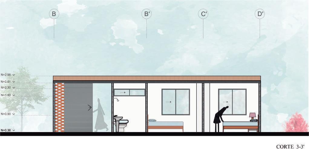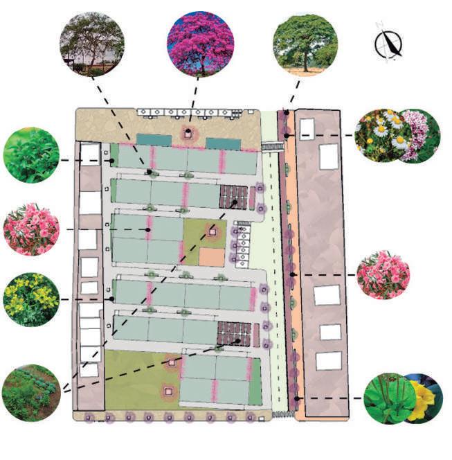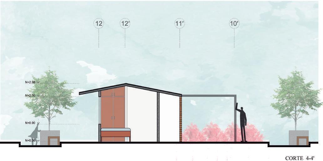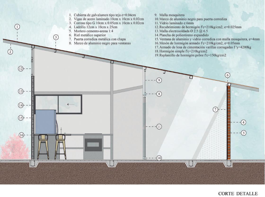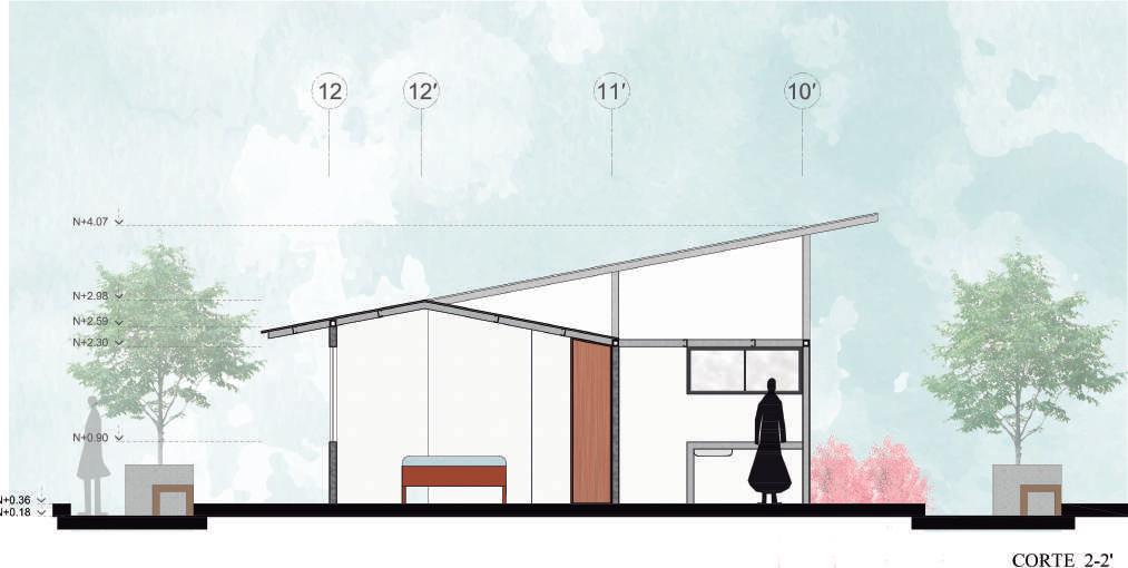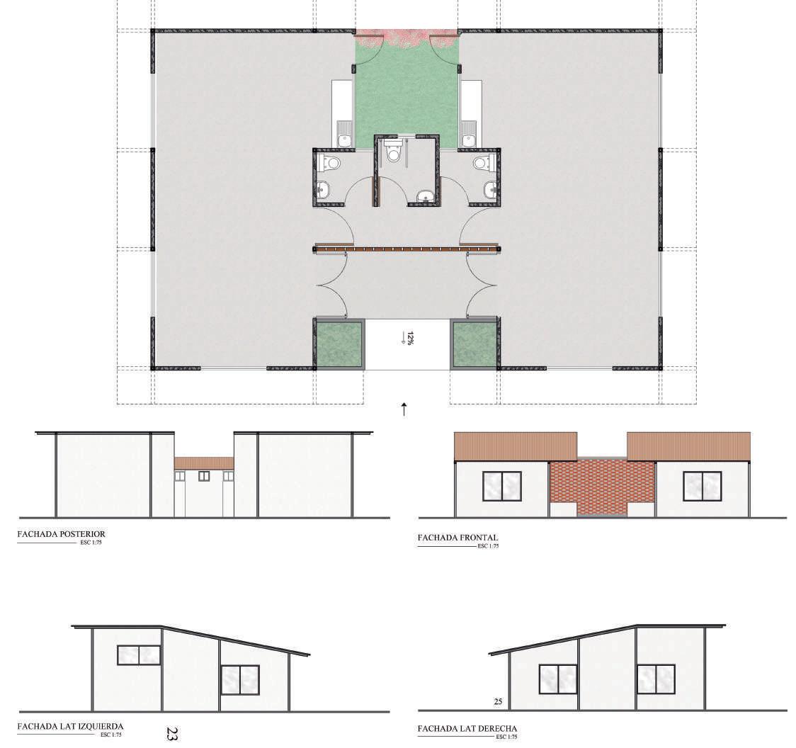 Se utilizo cubiertas inclinadas para asegurar el funcionamiento de la vivienda en los meses que tienen precipitaciones elevadas y se ocupó vegetación nativa